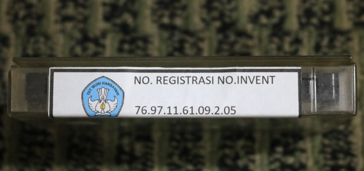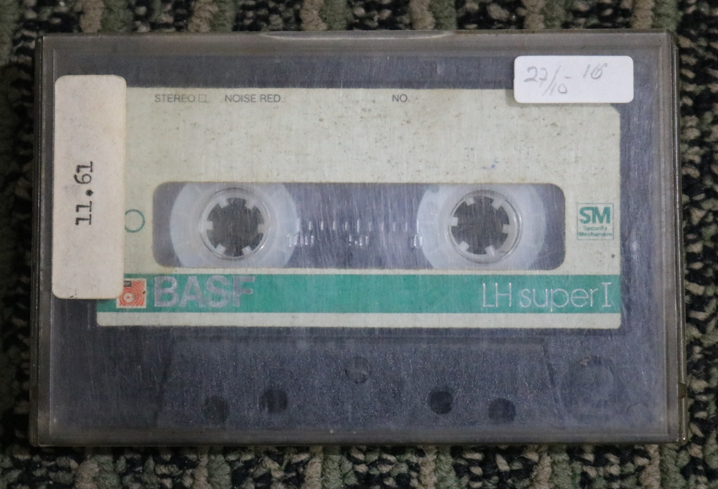 Sebuah kaset tape dengan kotak berbahan akrilik yang sudah menguning. Kaset berwarna hitam dengan tulisan “Wawancara dengan Mrs. Mishima”, terdapat juga tulisan BASF. Terdapat label dengan nomor 11.61 di kotak dan kaset. Kondisi utuh dan terawat.