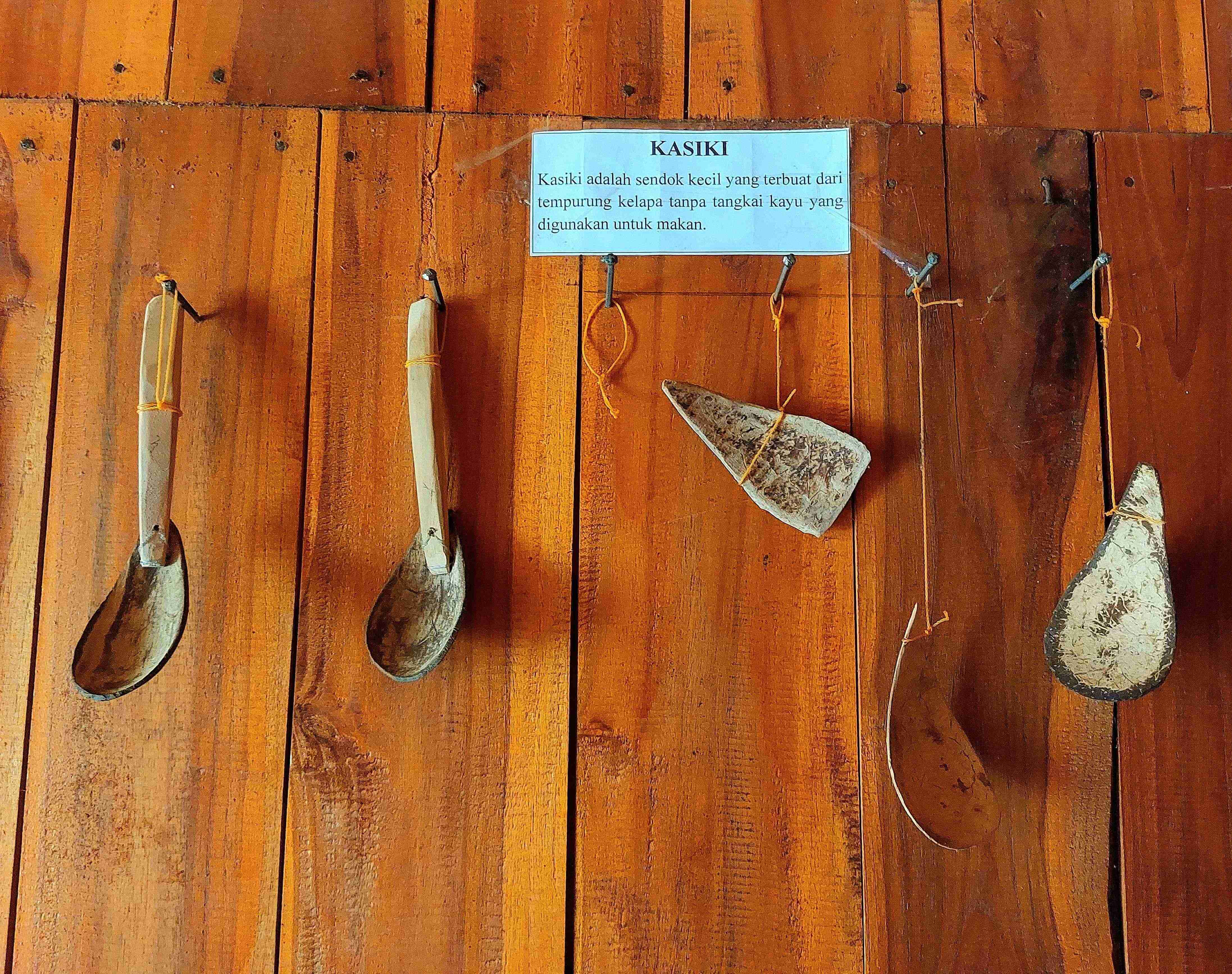 Terbuat dari tempurung kelapa yang telah dibersihkan, dan pegangannya terbuat dari kayu. Kasiki Digunakan sebagai sendok makan.