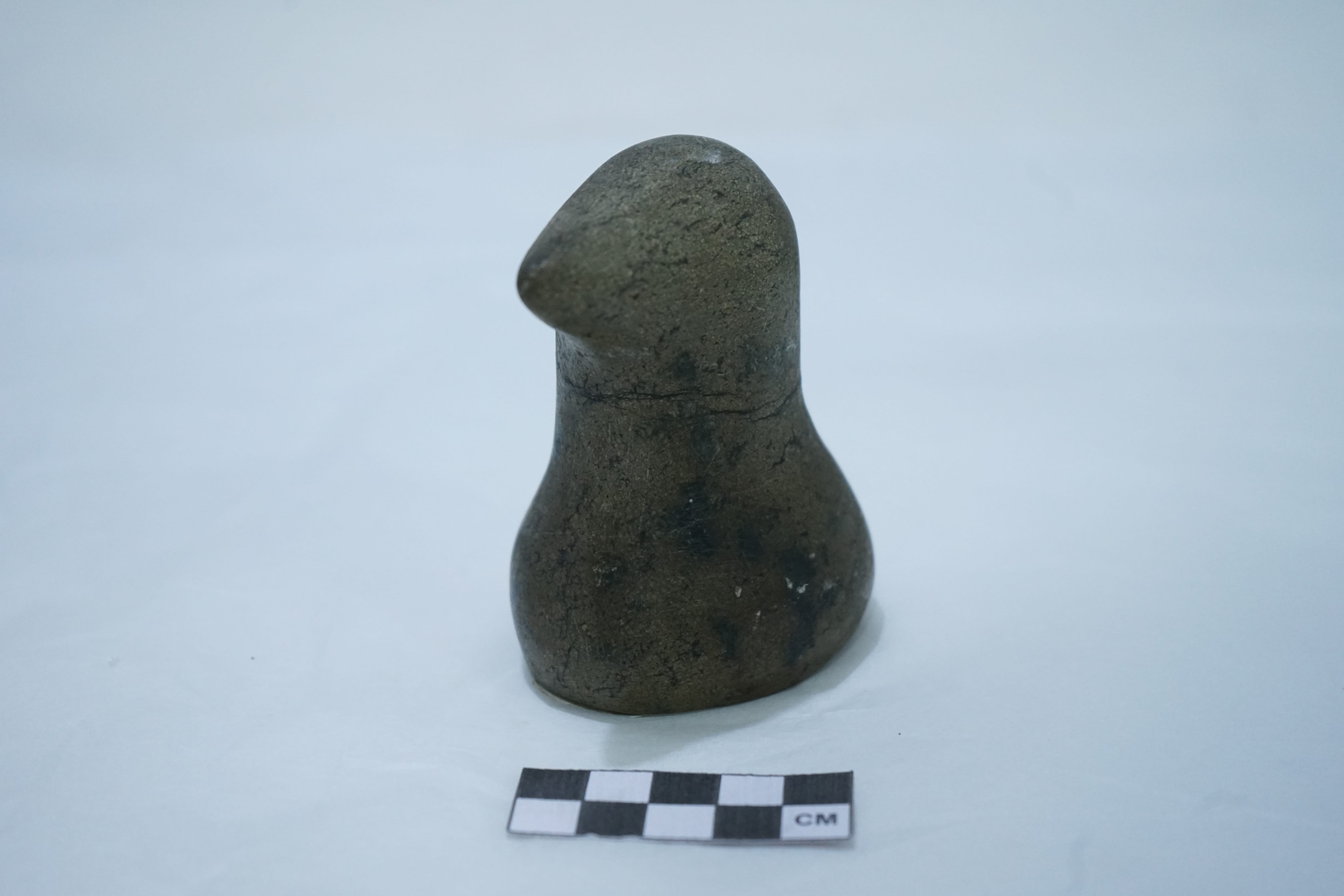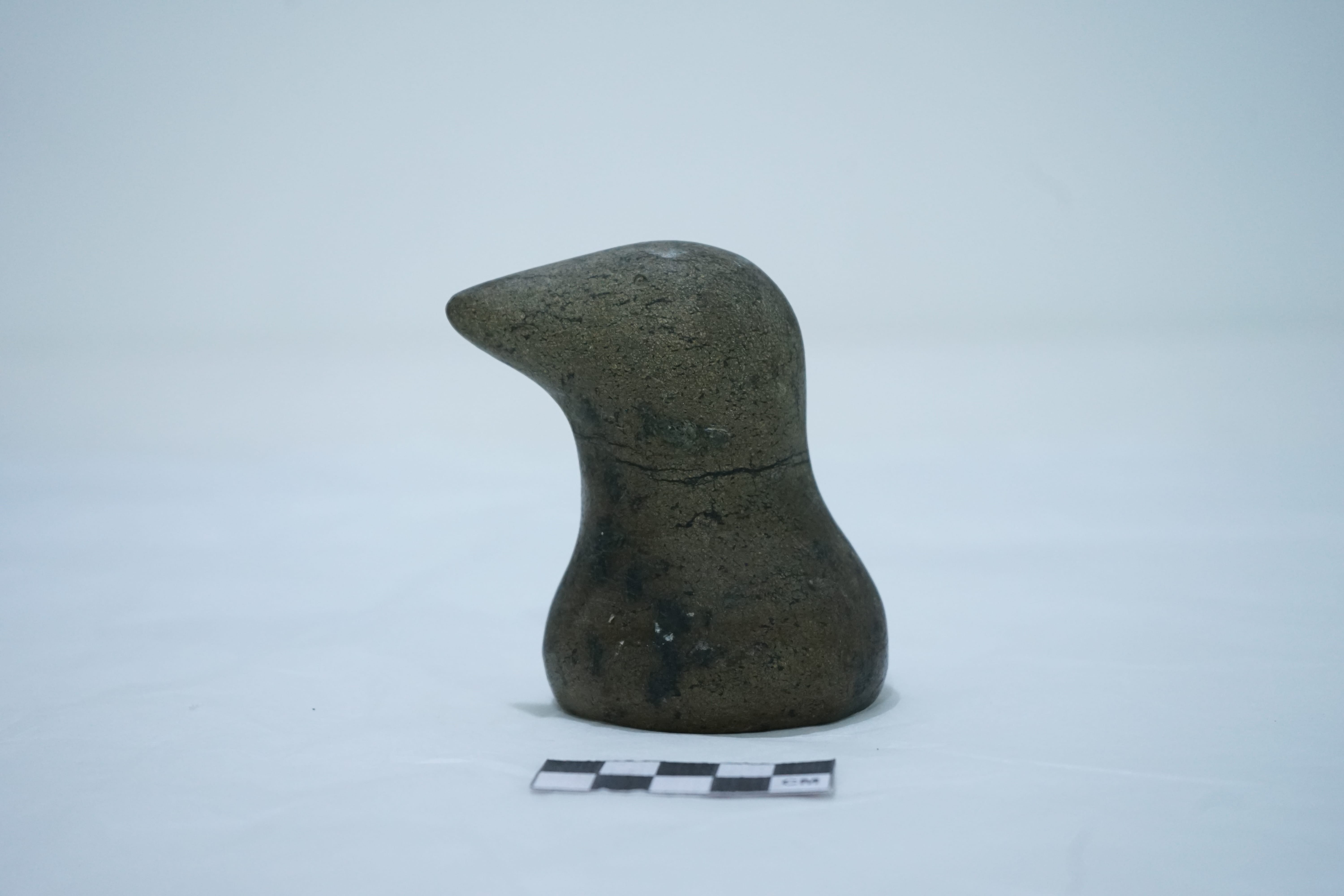 Patung ini bermaterial batu dengan bentuk kepala burung. Patung kepala burung ini terlihat menonjolkan bagian paruh burung. Terdapat garis pada bagian tengah patung tersebut, tepatnya di antara leher dan kepala.