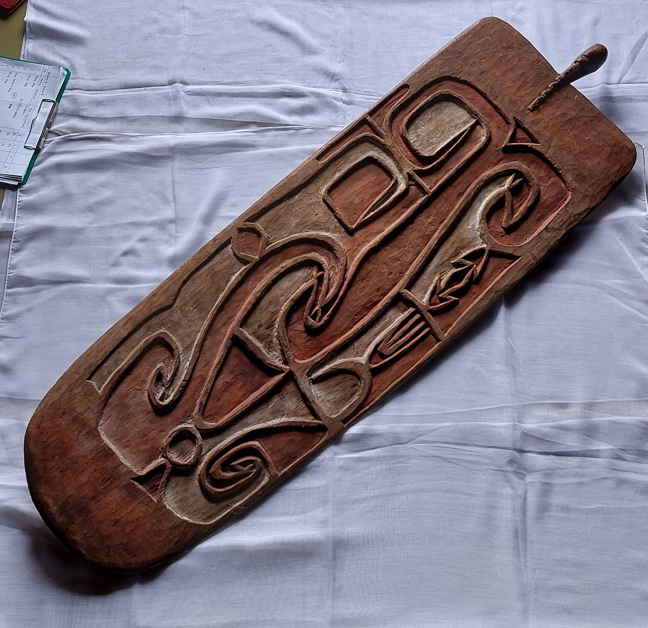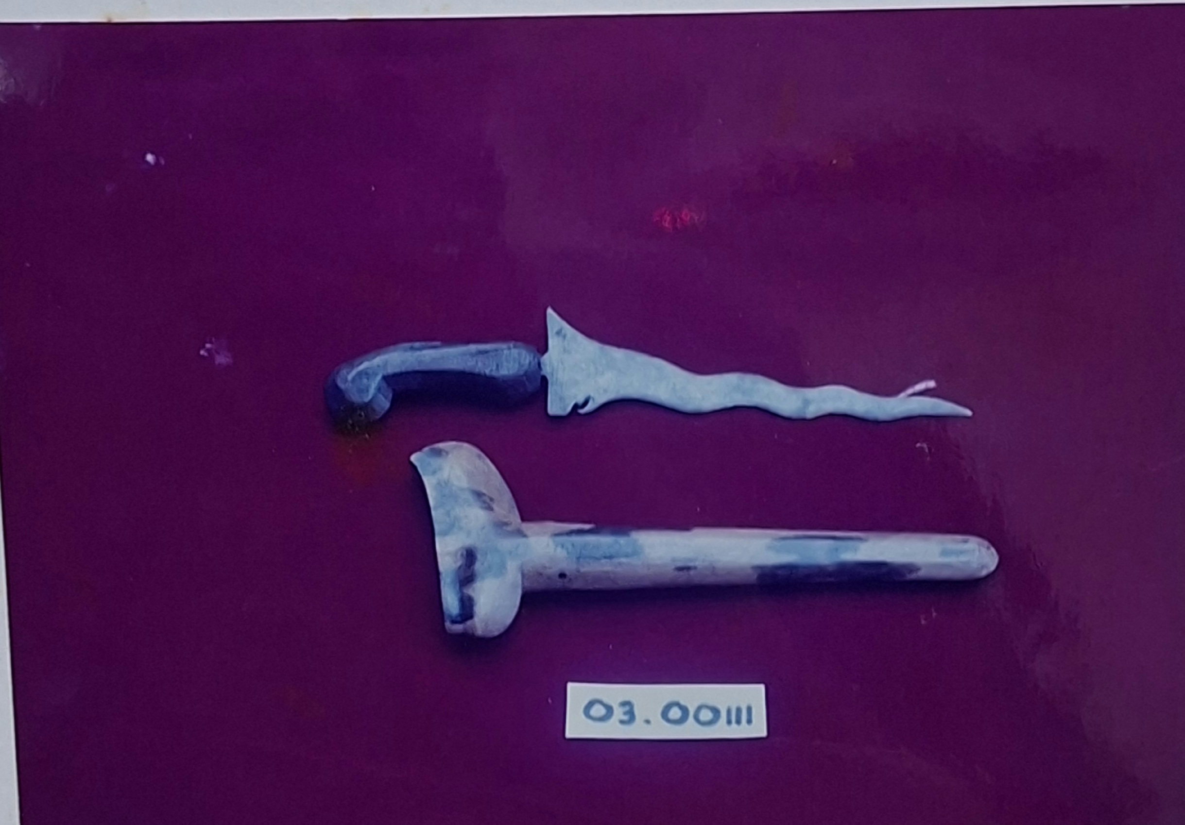 Sebuah kepala Genta terbuat dari bahan perunggu berbentuk kepala manusia bermuka empat dengan arah yang berlawanan. Pada bawah leher terputus. Fungsinya untuk agama Hindu.