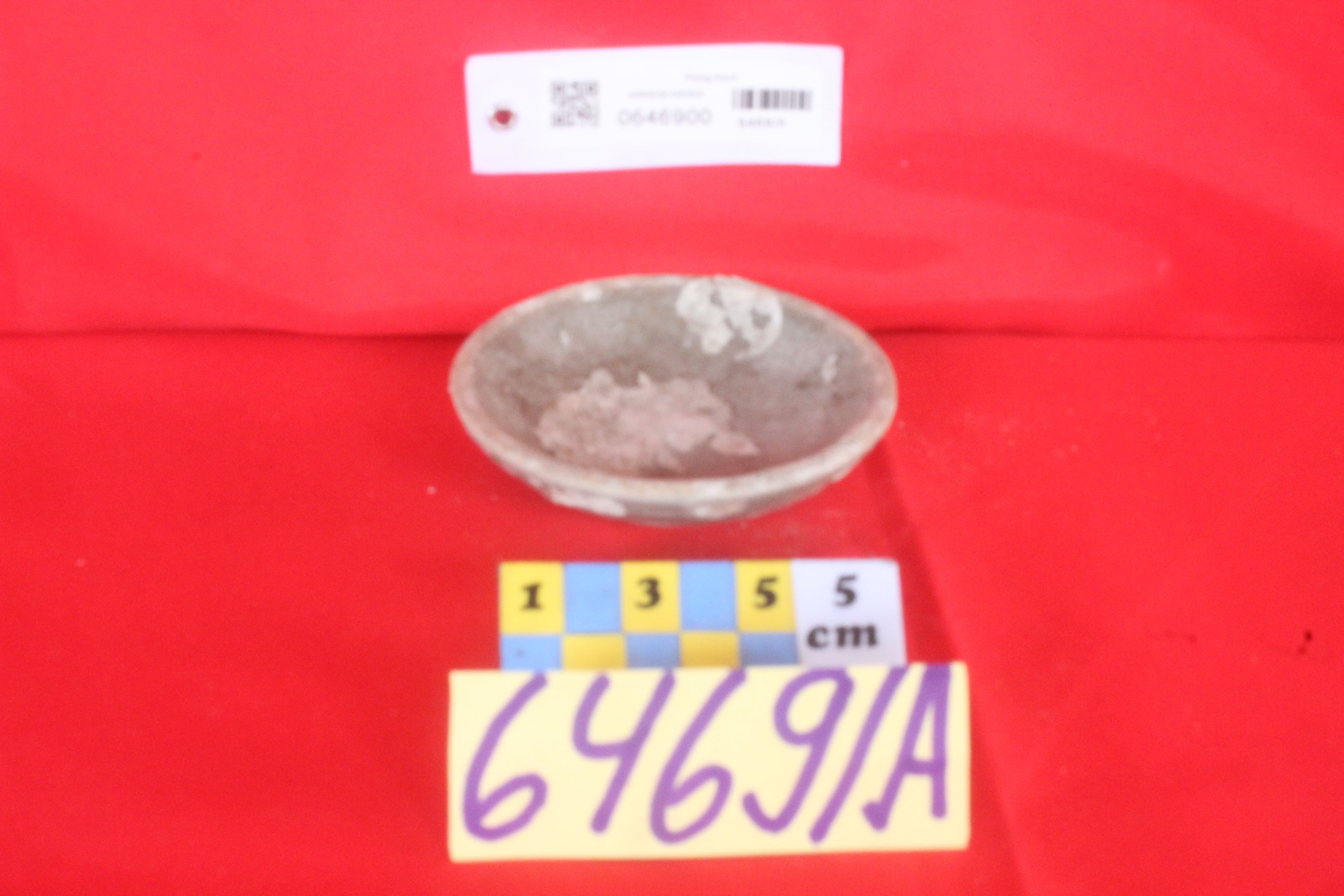 Warna hijau bahan porcelin motig luar teratai kondisi utuh, glasir. Telah diberi label sesuai dengan label kotak ekskavasi saat ditemukan BSY/BL/IC/Lot 2/07