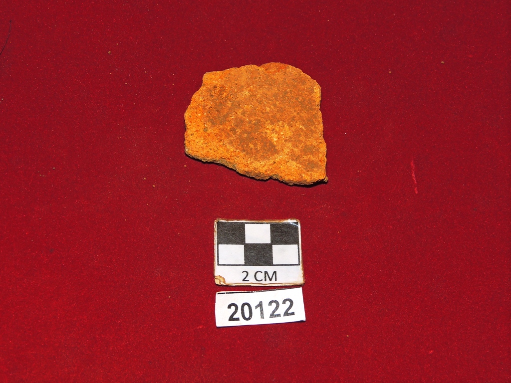 Pecahan bagian dasar wadah keramik porselen berbentuk mangkuk yang dibuat menggunakan teknik roda putar dengan ukuran 6,9 cm. Keramik ini dibuat dari tanah liat putih (kaolin) dan mineral feldspar (petunze) yang dibakar pada suhu yang sangat tinggi sekitar 1.250°C – 1.350°C. Mangkuk ini polos tanpa ornament, hanya glasir putih transparan yang menyaluti seluruh permukaannya. Kualitas bahan keramik ini sangat bagus sehingga menghasilkan warna putih bersih. Keramik jenis ini dikenal dengan nama porselen putih atau blanc de chine. Berdasarkan karakternya, keramik porselen ini dibuat di dapur Dehua – Fujian, China pada abad ke-18 atau 19 Masehi zaman Dinasti Qing.