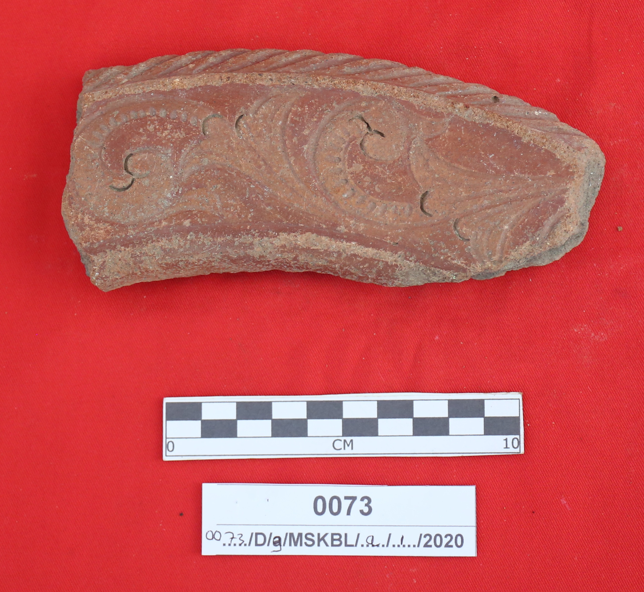 Keramik ini berbentuk wadah barupa cangkir berglasir transparan yang terbuat dari tanah liat putih (kaolin) dan mineral feldspar (petunze). Dilihat dari bentuknya dapat diperkirakan sebagai cangkir teh maupun mangkuk kecil yang memiliki ukuran sekitar 6,2 cm. Keramik ini dibuat menggunakan teknik roda putar. Walau terdapat dua warna (biru dan cokelat), keramik ini juga dikatergorikan sebagai keramik porselen biru putih. Dari ciri-ciri yang dimilikinya, keramik ini berasal dari masa Dinasti Qing abad ke-18 Masehi. Dinasti Qing merupakan dinasti terakhir yang berkuasa di Cina hingga awal abad ke-20 Masehi. Sebenarnya, keramik porselen biru putih telah dihasilkan dalam jumlah sangat besar di abad ke-14 Masehi era awal Dinasti Ming. Namun, tradisi menghasilkan porselen biru putih untuk tujuan eksport terus dipertahankan hingga berakhirnya dinasti Qing di awal abad ke-20 Masehi.
