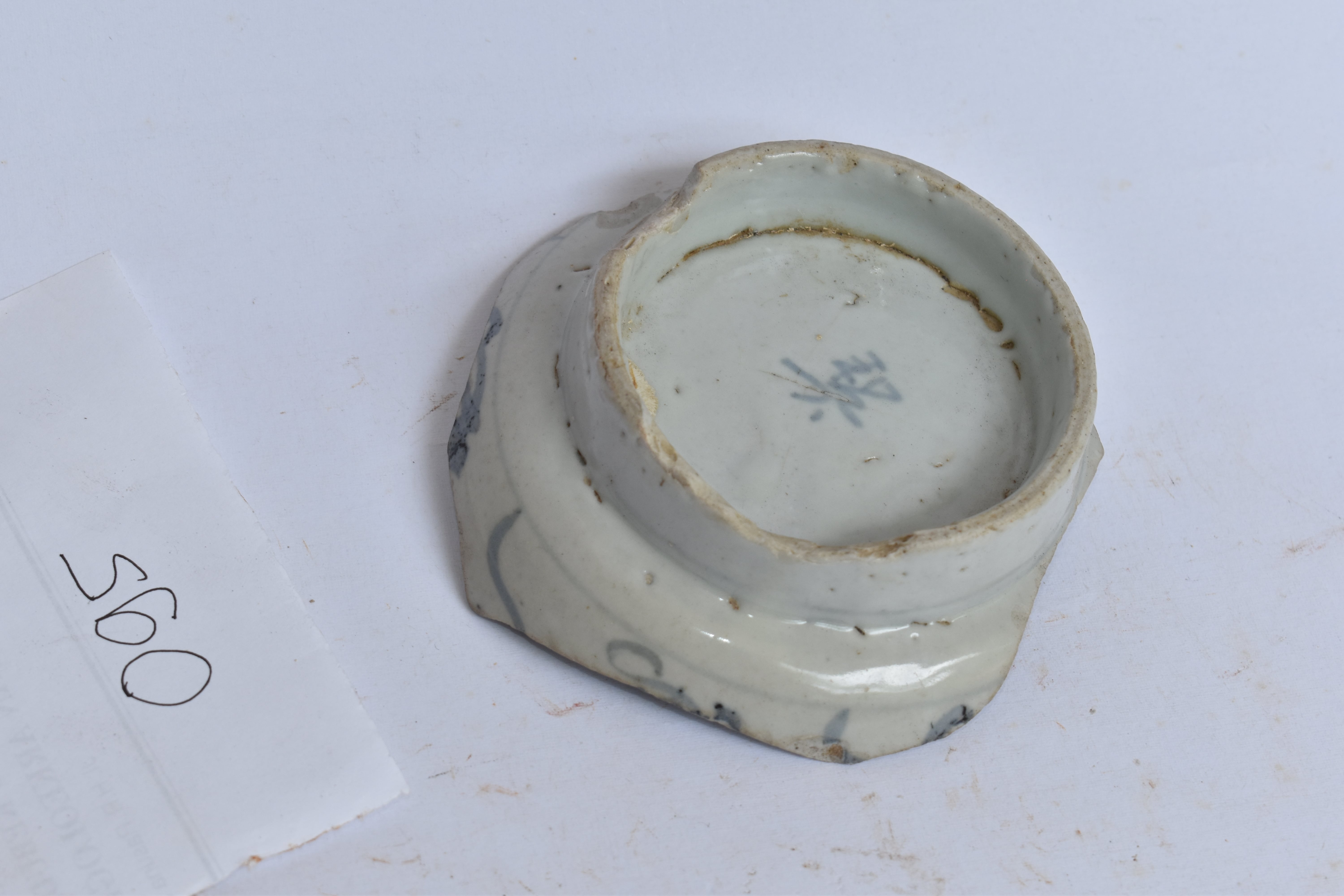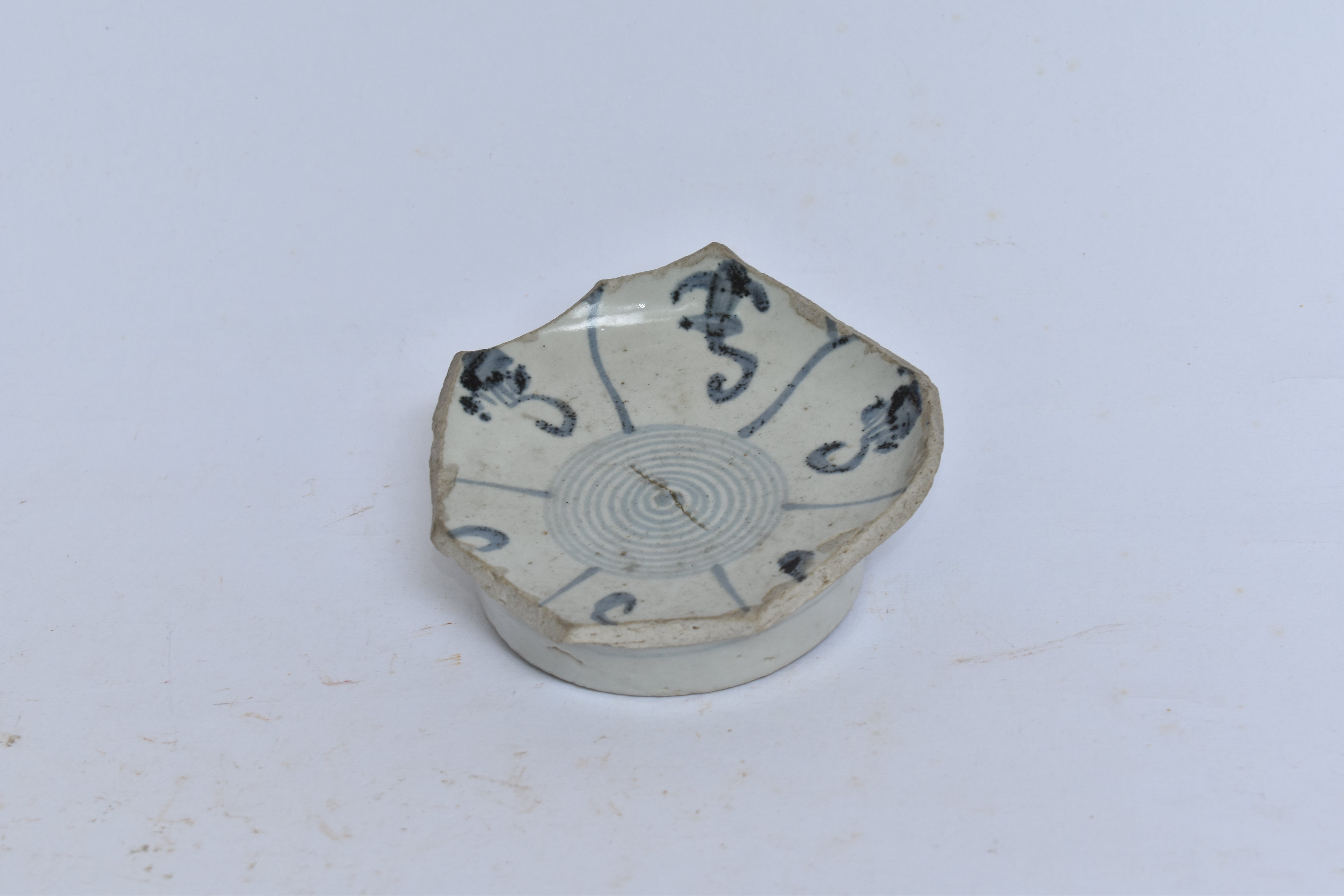 Pecahan keramik yang ditemukan pada hasil ekskavasi di pulau Onrust ditemukan berupa bagian badan dan dasar yang memiliki ciri-ciri berwarna putih yang disebabkan oleh bahan utamanya yaitu tanah liat putih (kaolin) dan mineral feldspar (petunze). Fragmen keramik yang diperkirakan berbentuk wadah piring ini dibuat menggunakan teknik roda putar di mana bahan keramik berupa tanah liat putih di bentuk dengan meletakan bahan keramik di atas alat yang berputar lalu diberi tekanan agar menghasilkan bentuk yang diinginkan. Fargamen ini bermotif flora dan geometris berwarna biru kehitaman yang dibuat menggunakan teknik lukis. Kemudian pada bagian bawah keramik memiliki motif berbentuk aksara Cina. Dari ciri-cirinya, keramik ini berasal dari Qing abad ke-19 Masehi.