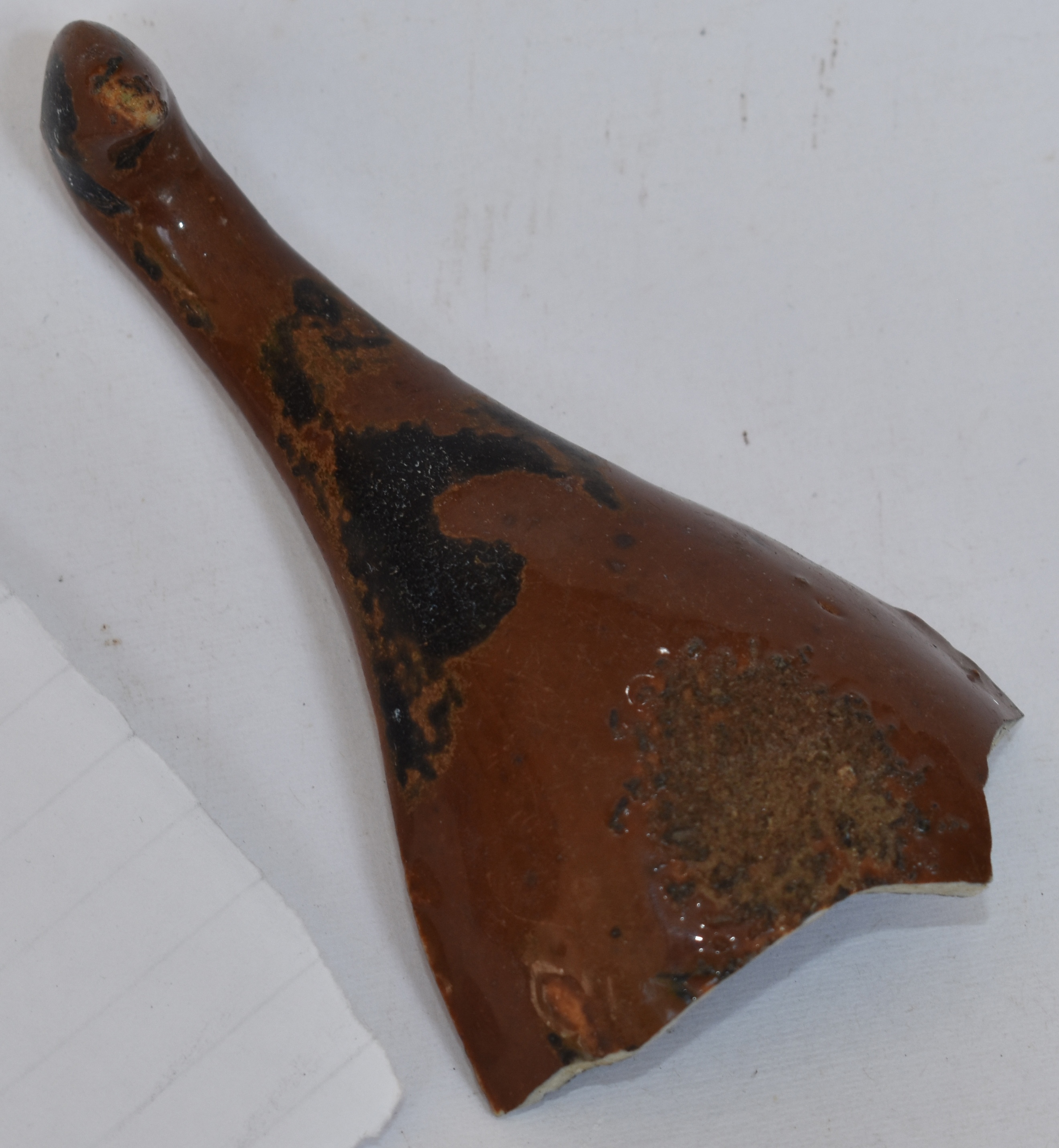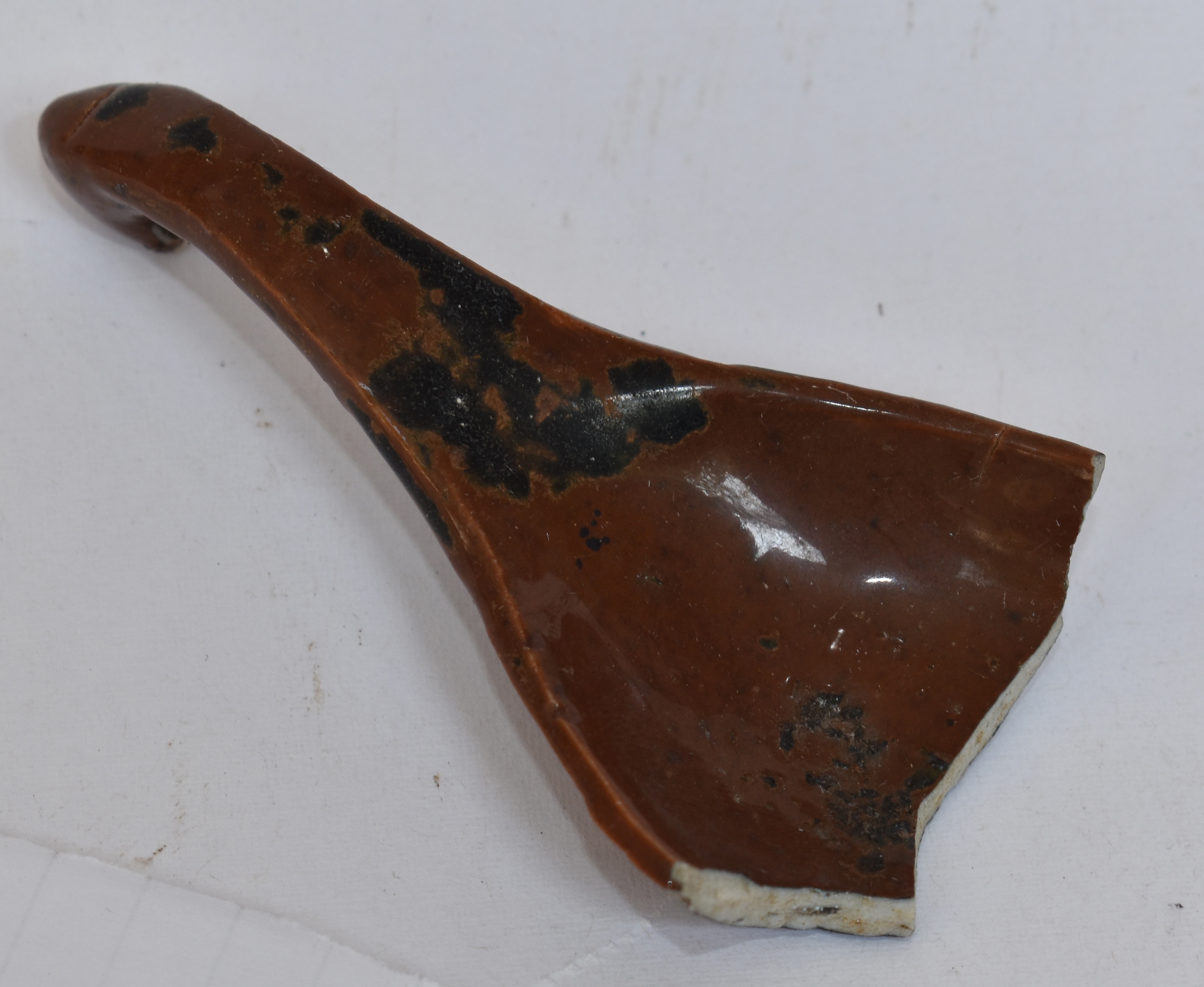 Sendok porselen monokrom cokekat dengan panjang 8 cm ini dibuat dari tanah liat putih (kaolin) dan mineral feldspar (petunze) dan dibakar pada suhu sangat tinggi sekitar 1.250°C – 1.350°C. Bahannya berwarna putih, permukaannya berwana monokrom cokelat dan dilapisi glasir bening pada keseluruhan permukaannya. Sendok porselen monokrom cokelat ini adalah salah satu variasi dari sendok-sendok porselen China yang dihasilkan di dapur Jingdezhen – Jiangxi pada masa Dinasti Qing abad ke-19 Masehi.
