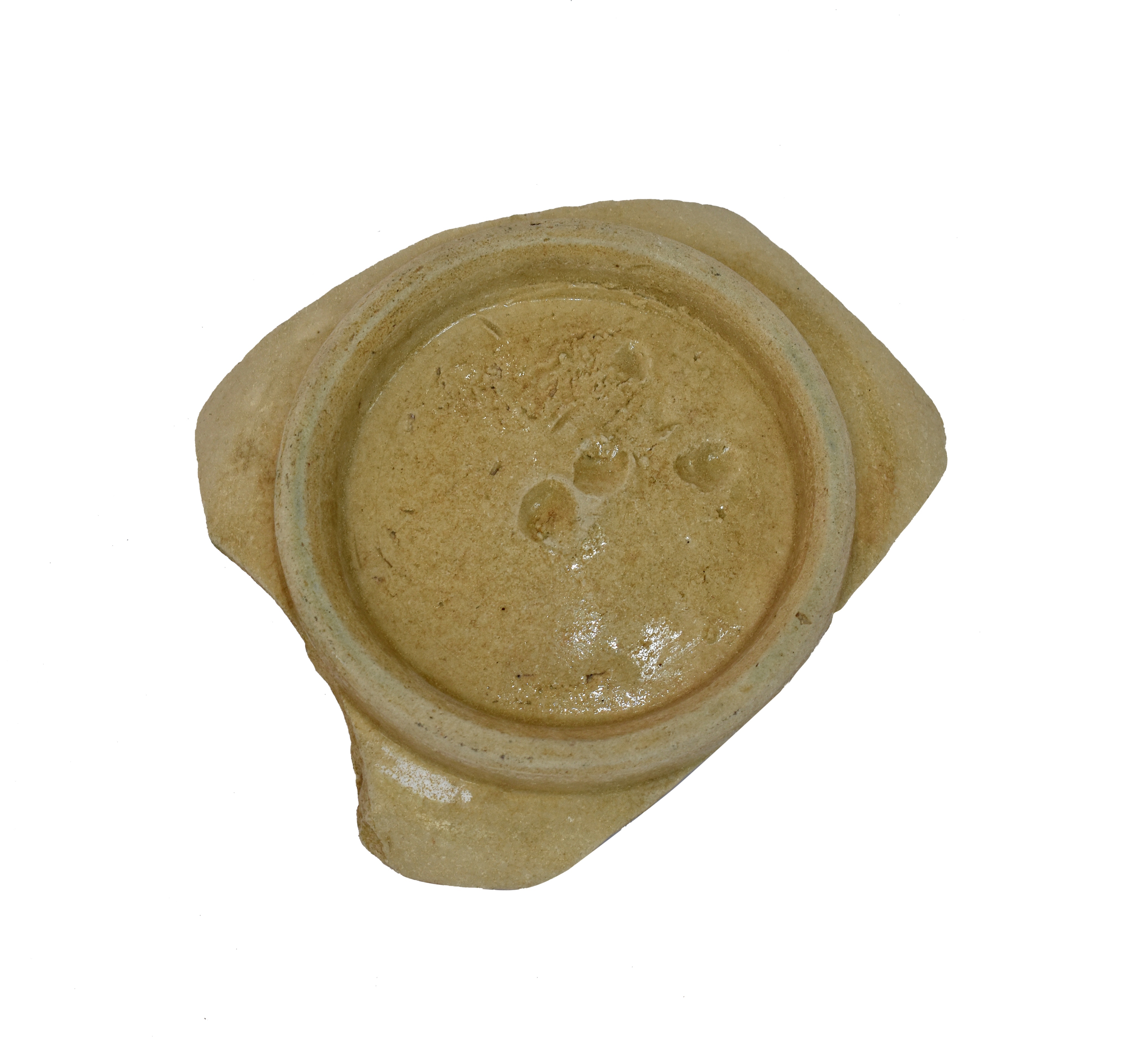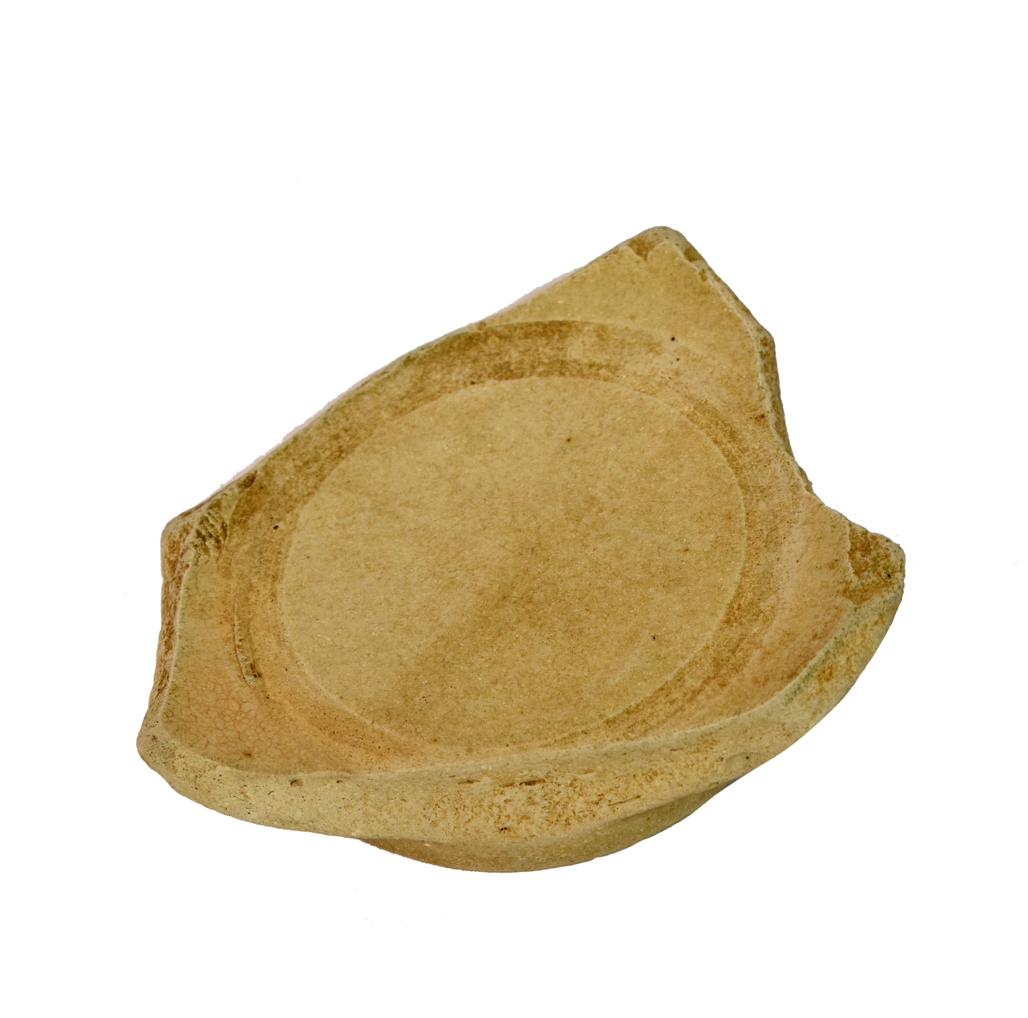 Fragmen Keramik yang diperoleh dari hasil ekskavasi Arkeologi di Pulau Onrust, kabupaten Kepulauan Seribu, Jakarta. Frgmen keramik ini merupakan bagian pecahan yang berbentuk wadah keramik yang hanya bagian dasar keramik bagian bawah. Fragmen Keramik ini memiliki ukuran 7 cm, yang terbuat dari bahan kaolin dan memiliki warna putih kecoklatan polos yang ada pada keramik tersebut. Fragmen keramik ini menggunakan Teknik Roda Putar. Keramik berbentuk wadah ini diperkirakan berasal dari Cina masa Dinasti Qing sekitar abad 19 Masehi, pada keramik ini hanya tersisa pada bagian dasar bagian bawah yang berwarna putih kecoklatan dengan motif polos