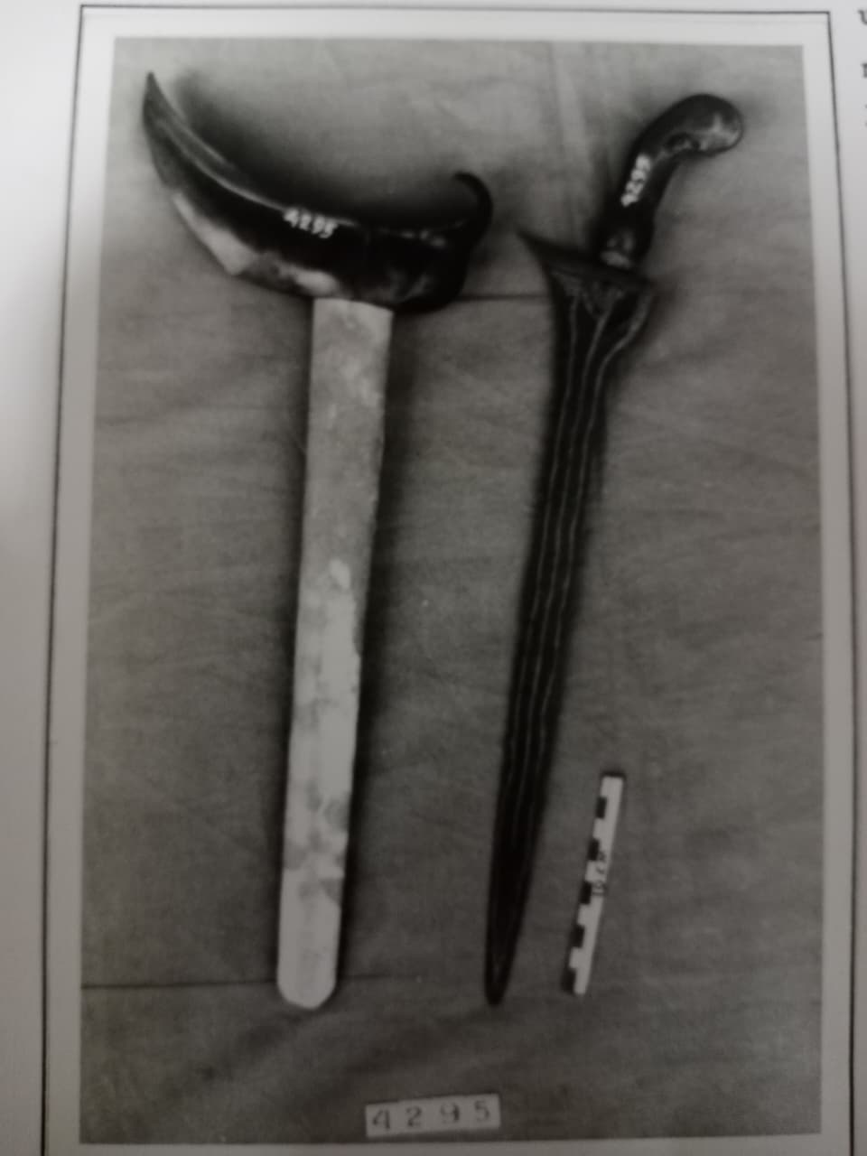 Keris ini memiliki bentuk lonjong berlekuk (luk) berjumlah 9 serta lancip pada ujungnya. Warnanya hitam keabu-abuan. Handel keris terbuat dari kayu, warnanya coklat. Keris ini memiliki tangguh kamardikan sedangkan pamor tidak terlihat karena belum terwarangi.