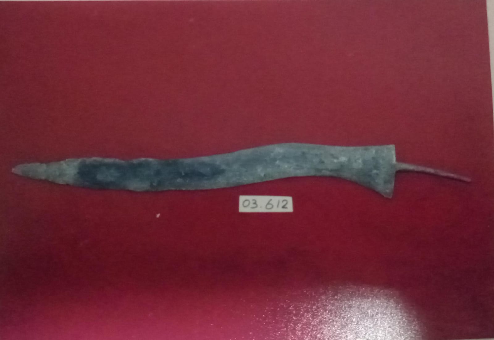 Keris ini berluk 3, terbentuk dari logam, besi, dan nikel. Keris ini tanpa tangkai dan warongko, fungsi belum diketahui.