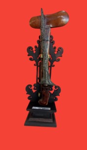 Keris yang mempunyai lekuk 7 dengan dhapur Gubar baleman ,pamor Ngulit semangka, memakasi wower,pegangan,lengkap dengan sarung