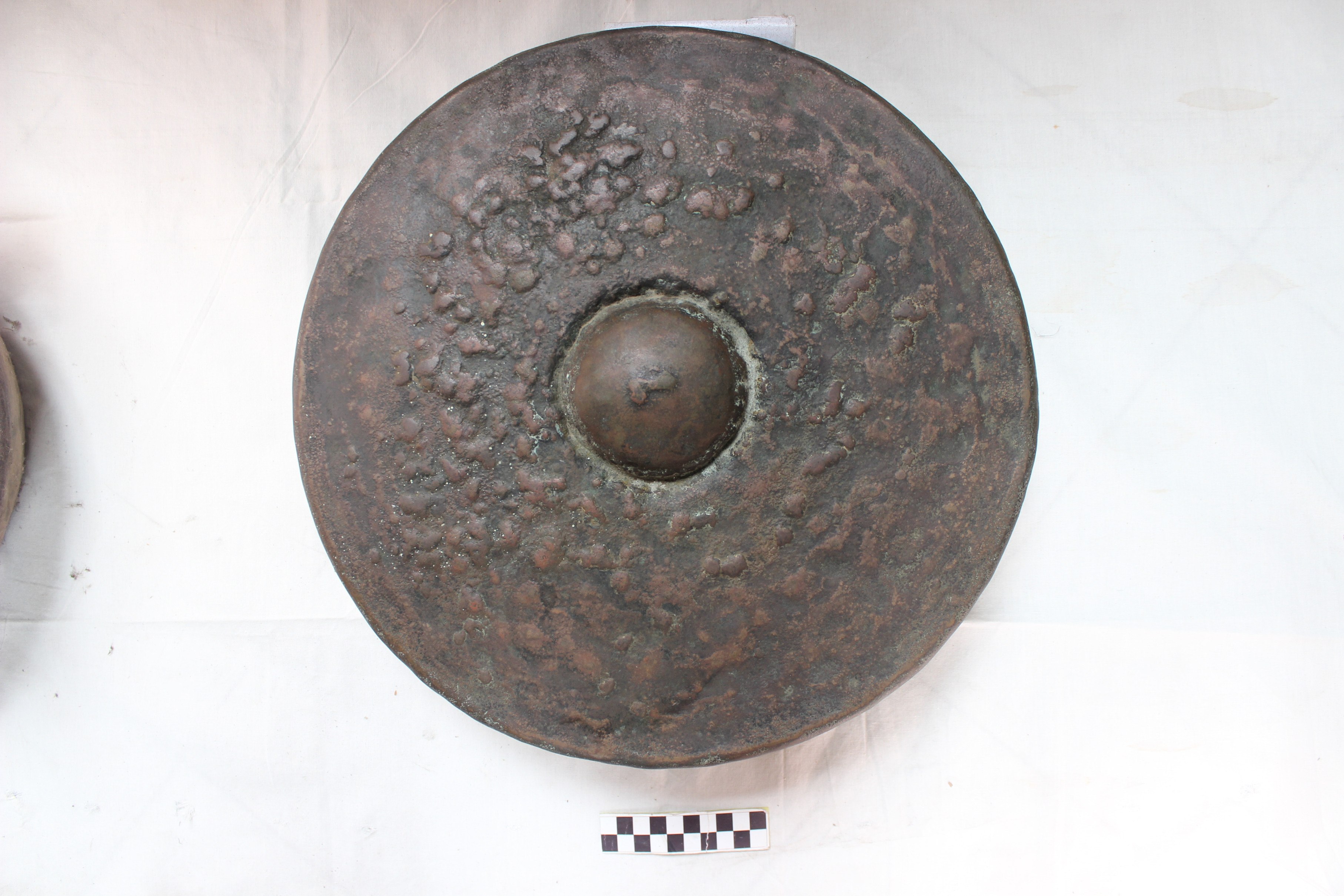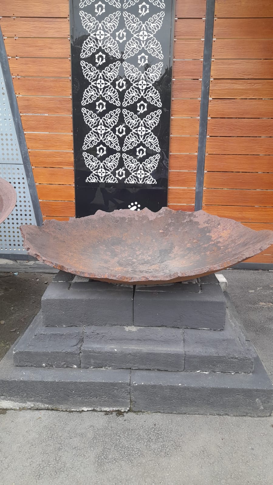 Terdiri dari 2(dua)bagian,yaitu bilah dan kumpang.Bentuk lurus,pipih,runcing,lok 4.Bagian bawah keris melebar.Bagian hulu dari kayu yang dihiasi teknik ukir dangkal yang berbentuk gelang-gelang dan bentuk segetiga lancip.Kumpang/sarung berwarna coklat.Dekat ke hulu bentuknya melebar.Di antara sambungan terdapat lubang-lubang.Fungsi sebagai senjata pertahanan diri.(E.5000.ab)