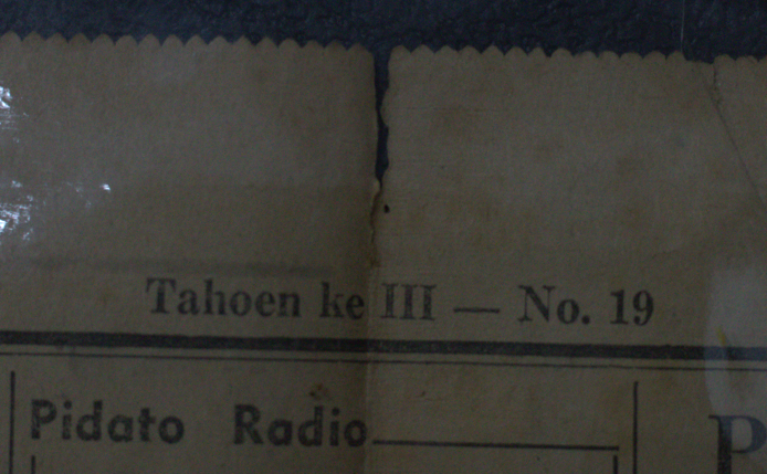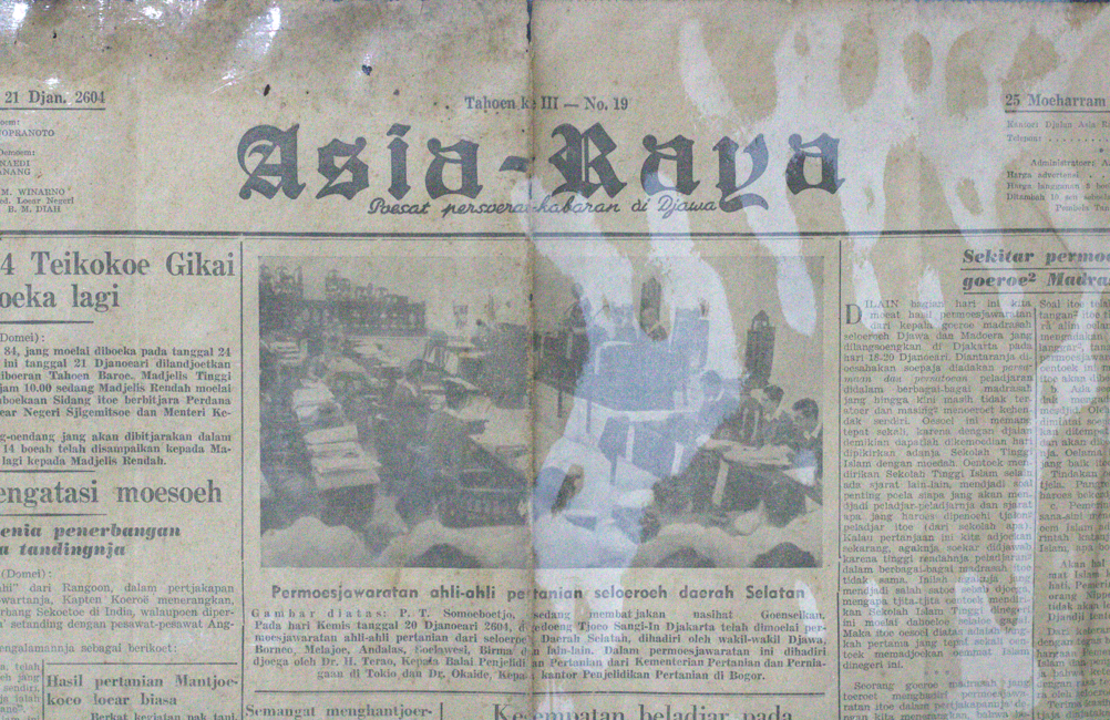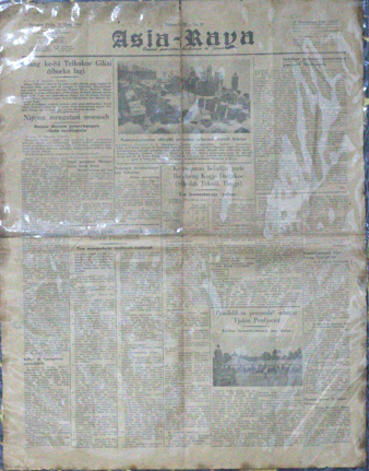 Koleksi merupakan potongan 1 lembar koran Asia Raya edisi Tahun ketiga No. 19 yang dikeluarkan pada Jumat, 21 Januari 1944. Pada halaman depan, utamanya di bagian pojok kiri atas memuat informasi hari dan tanggal terbit menggunakan tahun penanggalan Jepang yaitu "Djoemat Paing, 21 Djan. 2604". Diikuti di bawahnya terdapat nama pimpinan surat kabar beserta wakil dan pimpinan redaksi. Pada bagian pojok kanan atas tertulis tanggal dan hari terbit, tetapi dalam tahun penanggalan hijriah yaitu "25 Moeharram 1363 (1875)". Di bawah tulisan tersebut diikuti alamat kantor surat kabar Asia Raya dan harga langganan koran tersebut. Di bagian tengah atas koran tersebut terdapat nama redaksi koran "Asia-Raya" yang di bawahnya bertuliskan pusat persuratkabaran di Jawa dan terdapat juga tahun terbit dan nomor koran di atas tulisan nama redaksi tersebut. Pada halaman depan koran terdapat headline berita yaitu terkait sidang ke-84 Teikoku Gikai dan permusyawaratan ahli-ahli pertanian. Di halaman depan koran ini juga berisi beberapa artikel berita, antara lain berita tentang Jepang mengatasi musuh dalam Perang Dunia II, pendidikan pemuda yang dijadikan prajurit semimiliter Jepang, dan terdapat beberapa artikel mengenai kondisi perekonomian dan informasi pelatihan di Jawa. Pada halaman pertama di bagian tengah atas terdapat dua gambar terkait perkumpulan ahli pertanian dan juga di bagian bawah terdapat gambar pelatihan prajurit di sebuah lapangan. Pada halaman belakang koran di pojok kiri dan pojok kanan menunjukkan tanggal terbit koran dan di tengah terdapat nomor seri dari koran tersebut. Di halaman belakang juga memuat artikel berita, di antaranya artikel tentang keagamaan, pendidikan, kondisi perekonomian, dan hiburan seperti informasi lagu-lagu dan seni pertunjukan. Selain itu, terdapat dua kolom utama yang menceritakan terkait kota Jakarta dan Indonesia secara keseluruhan. Terdapat satu kolom besar di bagian kanan atas yang memuat pelajaran bahasa Jepang. Pada bagian bawah tengah dikhususkan untuk kolom iklan. Beberapa di antaranya terdapat informasi hadiah lotre undian, iklan bedak, Kursus Bahasa Indonesia, dan kursus dagang. Selain itu, dalam kolom iklan tersebut terdapat iklan lowongan kerja. Kondisi dari koleksi ini di bagian tepinya terdapat banyak noda cokelat diduga berasal dari cairan. Kondisi dari kertas juga sudah berwarna kusam, terdapat lubang-lubang di permukaan kertas, serta terdapat bekas lipatan.