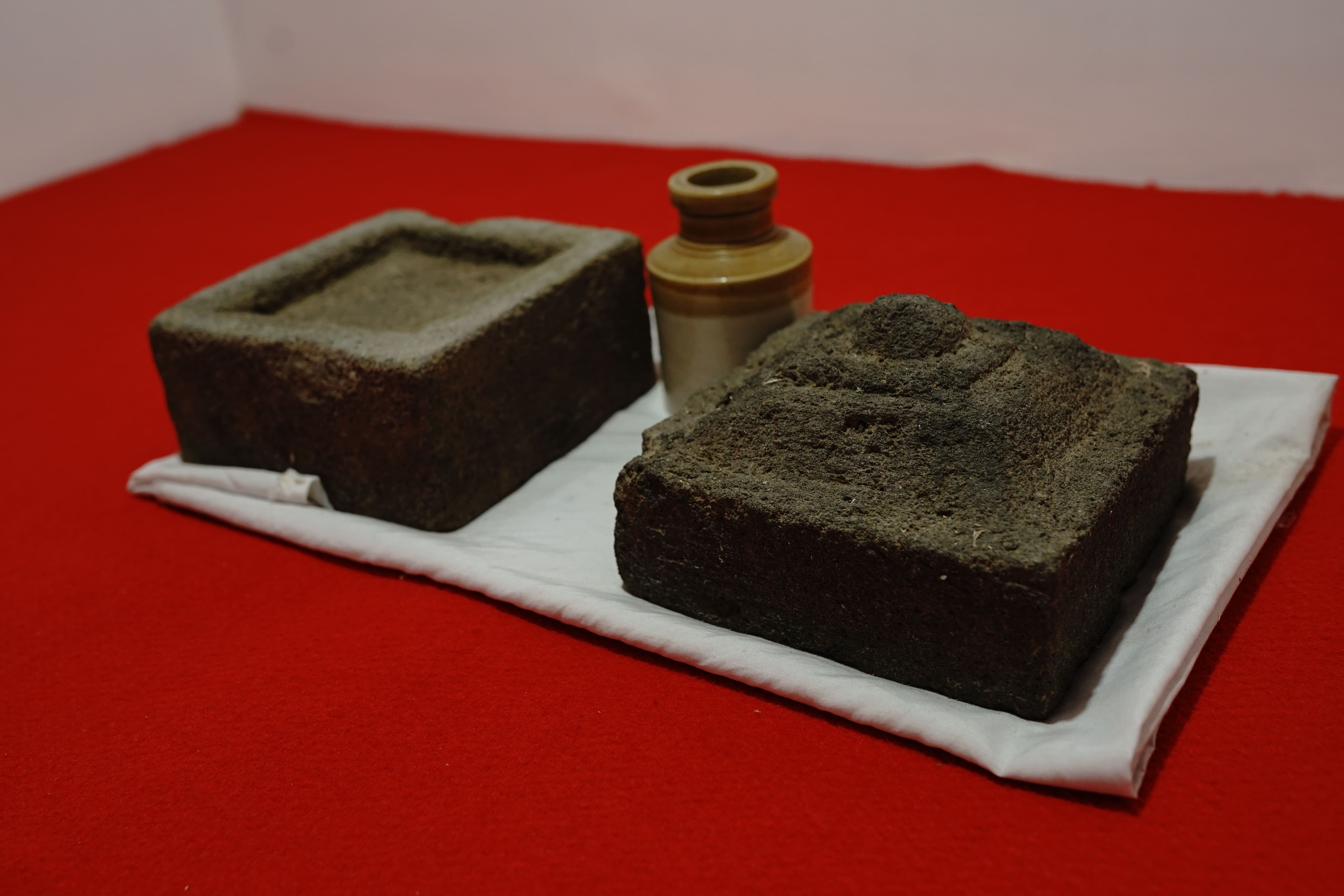 Memiliki panjang 19,5 cm, lebar 19,5 cm, dan tinggi atau tebal 9,5 cm. Bagian dari kotak pripih sedikit rusak.