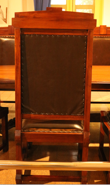Kursi terletak di ruang perumusan menghadap timur. Kursi berbahan kayu jati dan berwarna coklat. Kursi memiliki bantalan tempat duduk dan sandaran yang terbuat dari busa, serta dilapisi kulit berwarna coklat tua dan dilengkapi paku sebagai pengikat antara kulit dan kayu. Kursi memiliki 4 kaki dan 3 pijakan kaki. Kursi tidak memiliki 2 sandaran tangan. Kursi memiliki sandaran kepala berbentuk persegi panjang vertikal yang lebih tinggi dibandingkan sisi lainnya. Bagian bantalan kursi terdapat bintik-bintik cokelat muda di beberapa bagian.
