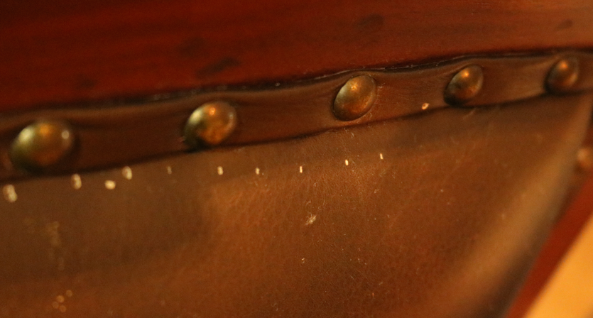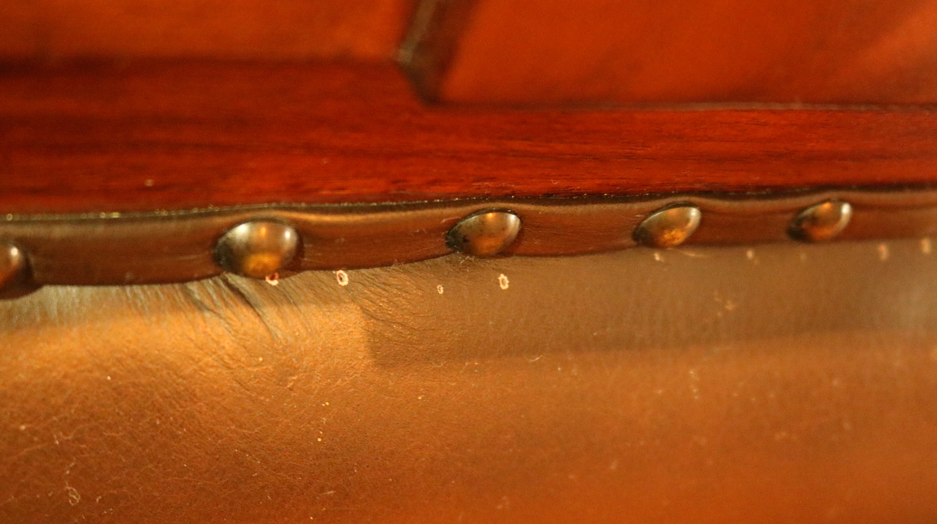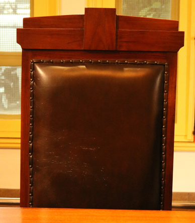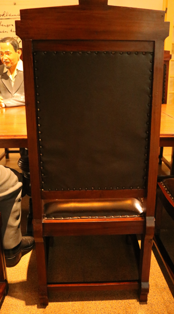 Kursi berbahan kayu jati dan berwarna coklat. Kursi terletak di ruang perumusan menghadap barat. Kursi memiliki bantalan tempat duduk dan sandaran yang terbuat dari busa, serta dilapisi kulit berwarna coklat tua dan dilengkapi paku sebagai pengikat antara kulit dan kayu. Kursi memiliki 4 kaki dan 3 pijakan kaki. Kursi tidak memiliki 2 sandaran tangan. Kursi memiliki sandaran kepala berbentuk persegi panjang vertikal yang lebih tinggi dibandingkan sisi lainnya. Bagian kulit bantalan sandaran kursi terdapat banyak lubang kecil. Tekstur kayu di bagian kanan belakang sandaran kepala (bagian ujungnya) tidak rata.