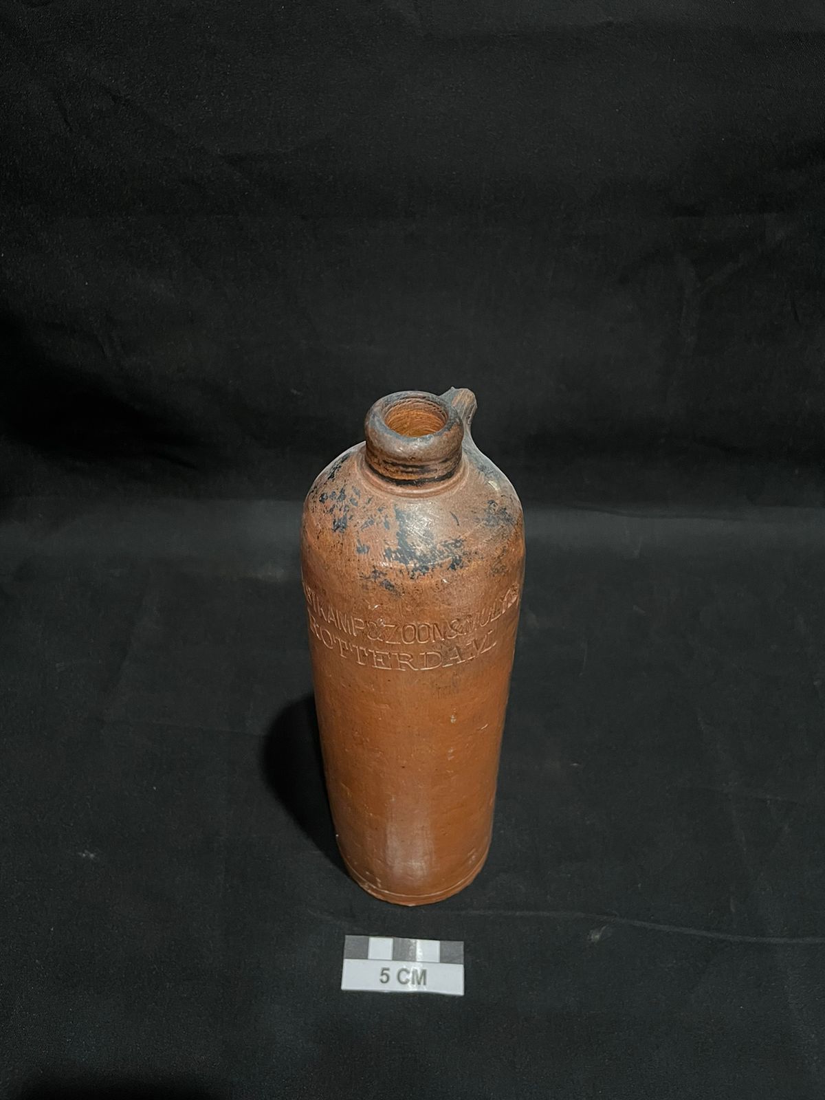 Bentuk badan bundar, mulut mekar membalik keluar, berongga. Di antara badan dan leher terdapat tangkai pegangan, dengan ornamen flora. Bagian badan (perut) benda terdapat tempat untuk menyalakan api yang menyerupai corot (mulut bebek). Bagian badan terdapat motif sulur bunga, ban melingkar dan garis-garis pendek vertikal. Lampu ini digunakan sebagai alat penerangan di malam hari/dalam keadaan gelap.