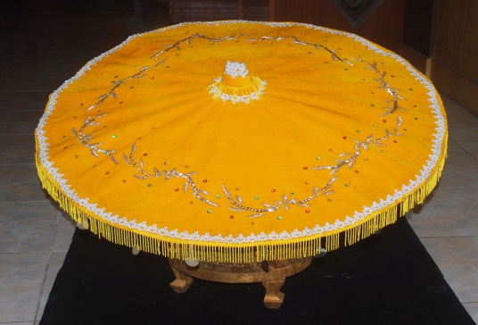 Berasal dari Cina, dibuat dari bahan porselin dengan teknik lempeng. Ragam hias di bawah glasir bermotif goresan kuas. Berfungsi sebagai peralatan rumah tangga sebagai wadah makanan atau sebagai alas gelas.
