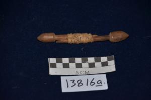 Lesung batu ini berbentuk empat persegi panjang dengan sisi yang tidak sama. Pada bagian tengah terdapat lubang berbentuk persegi panjang. Bahan bakunya adalah batuan metamor warna abu – abu. Teknik pengerjaannya masih kasar, bahkan terdapat kesan seolah – olah dalam proses pembuatan. Hal itu dapat dilihat dari sisi – sisi yang tidak sejajar atau beberapa guratan bekas pahatan, Seluruh permukaan tanpa hiasan dan sudah aus. Lesung batu ini merupakan hasil kebudayaan megalith dan kegunaannya selalu dikaitkan dengan kegiatan yang bersifat profan, yaitu sebagai alat penumbuk biji – bijian. Namun dapat pula dihubungkan dengan tujuan yang bersifat sakral, yakni sebagai perlengkap pemujaan nenek moyang.