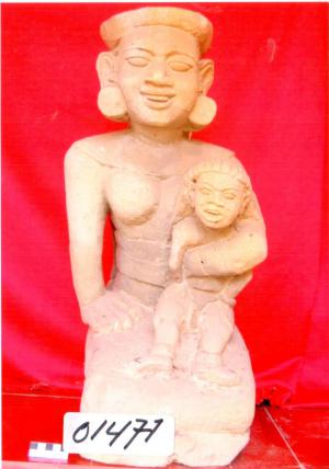 Lonceng terbuat dari logam berwarna cokelat tembaga dengan tinggi 30 cm dan diameter terbesar (bagian ujung lonceng) 30 cm. Lonceng ini memiliki bentuk seperti tabung yang sisi bawahnya terbuka. Pada bagian pangkal lonceng terdapat satu bidang lingkaran yang di atasnya terdapat bagian berbentuk persegi yang berfungsi untuk mengikatkan tali. Tali yang diikatkan pada lonceng adalah tali tambang dengan warna alaminya (cokelat). Terdapat nomor inventaris yang sudah robek labelnya dan tidak terbaca. Pada bagian bawah lonceng terdapat hiasan motif berupa dua garis yang melingkari lonceng.