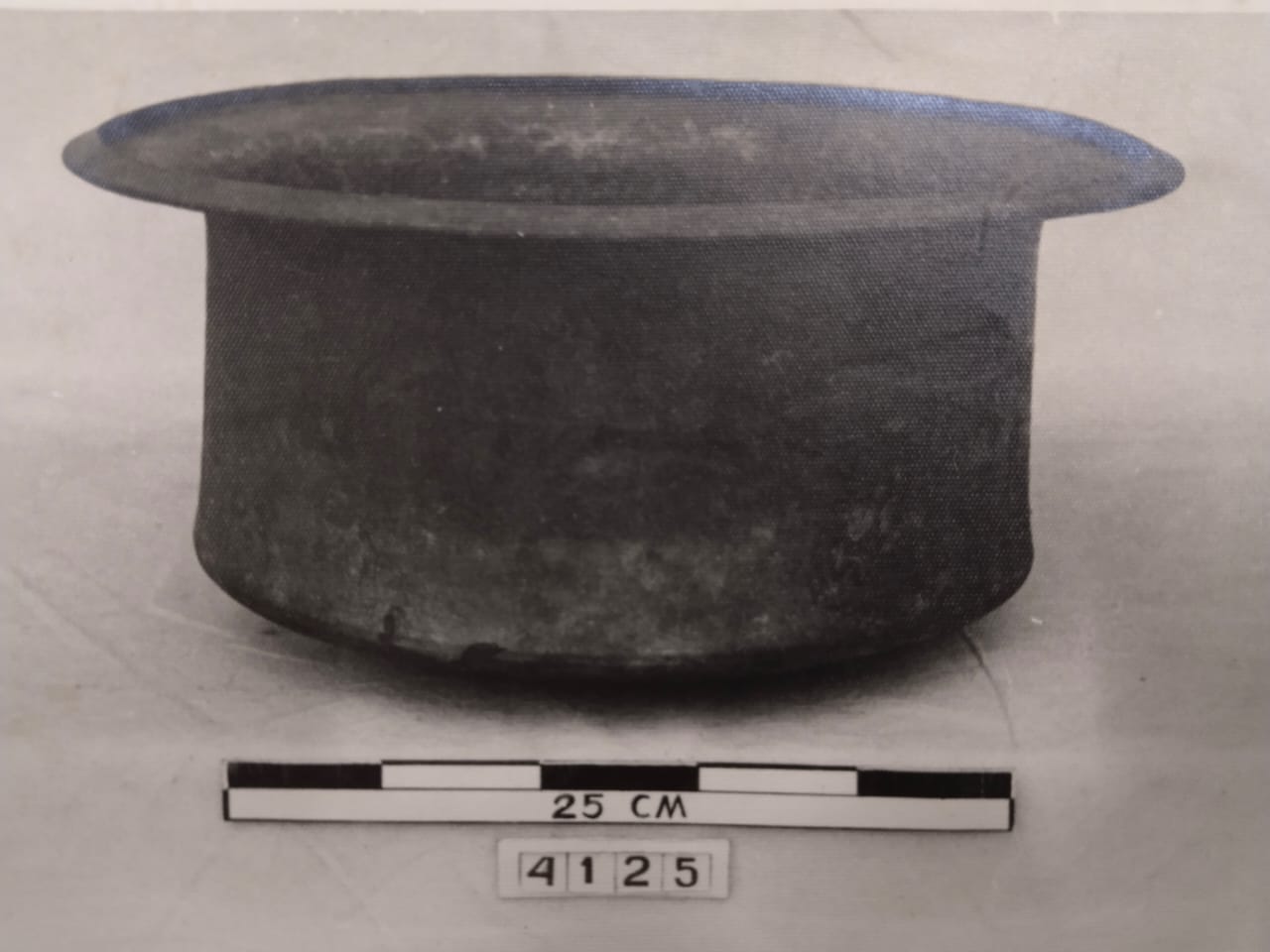 Mangkok bundar dengan permukaan halus dan rata serta sedikit retakan. Mangkok tersebut berada diruang keramik