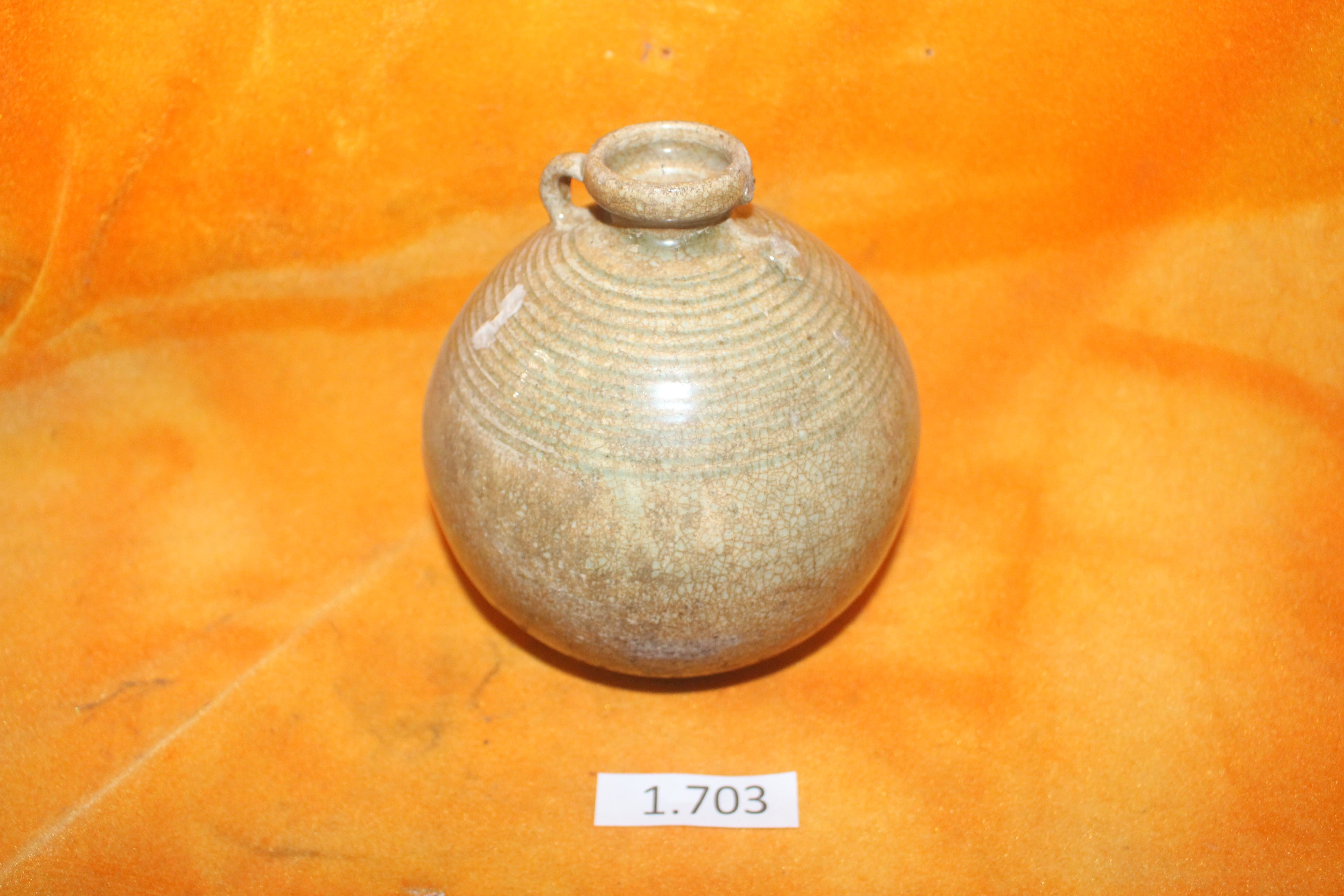 Mangkuk dengan lapisan glasir berwarna coklat dengan motif retak seribu
