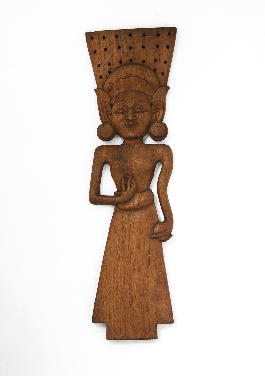 Terbuat dari tanah liat, bentuk bulat cekung dan berkaki rendah berglasir warna krem, retak seribu. Bibir rata, bagian dalam dan luar hingga dasar polos. Pada permukaan atas dan bawah terdapat sisa-sisa karang laut yang menempel. Cina, Dinasti Sung abad 10-13 M.