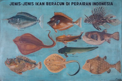Terbuat dari tanah liat, bentuk bulat cekung dan berkaki dan berkaki, berglasir warna abu-abu, retak seribu, bibir rata, bagian tengah dalam dan kaki tidak diglasir, dasar bawah rata tanpa glasir. Pada permukaan atas dan bawah terdapat sisa-sisa karang laut yang menempel. Cina, Dinasti Sung abad 10-13 M.