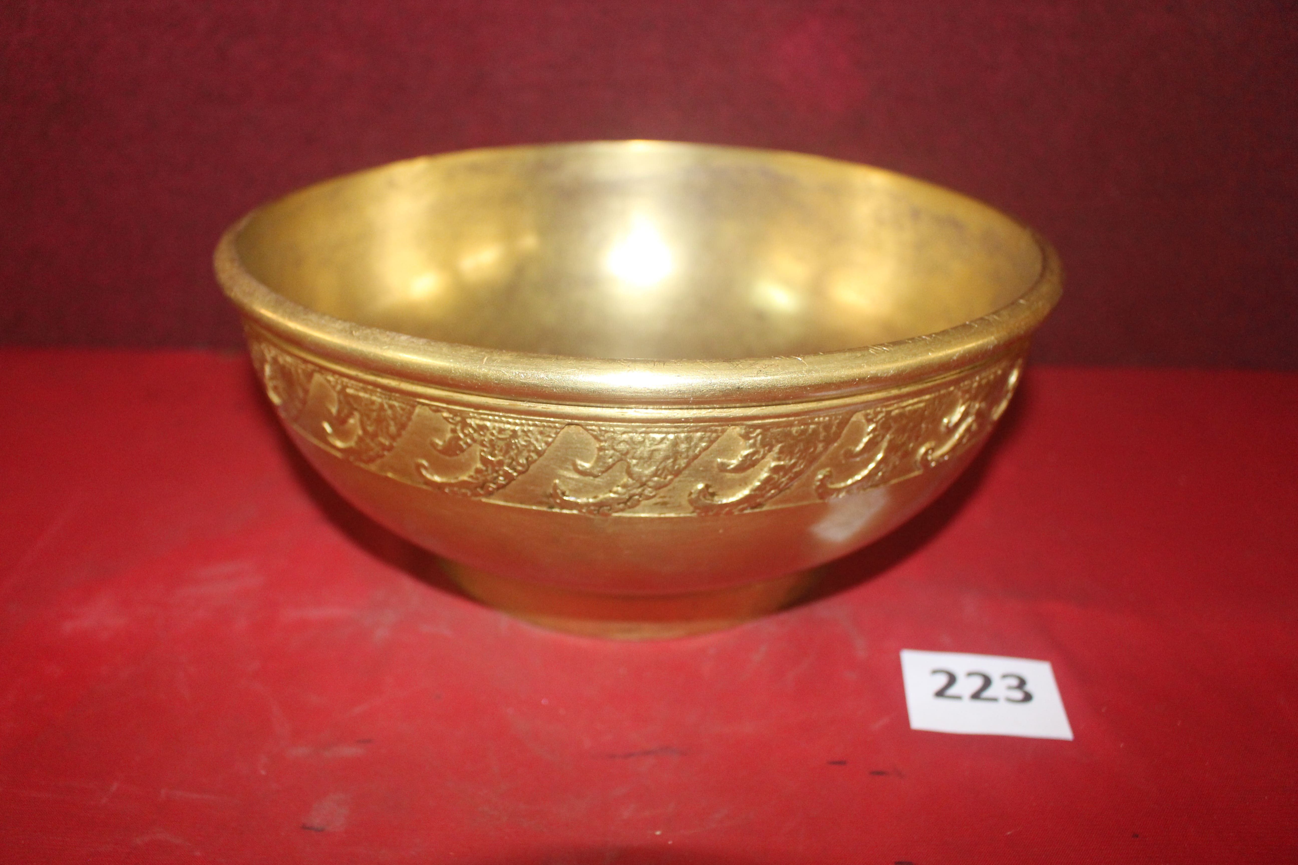 Terbuat dari campuran tanah liat dan batuan, warna kelabu, bentuk bulat bibir tipis membalik keluar, bagian luar dipenuhi hiasan motif rumputan abstrak dan garis melingkar warna biru. Bibir sompel.