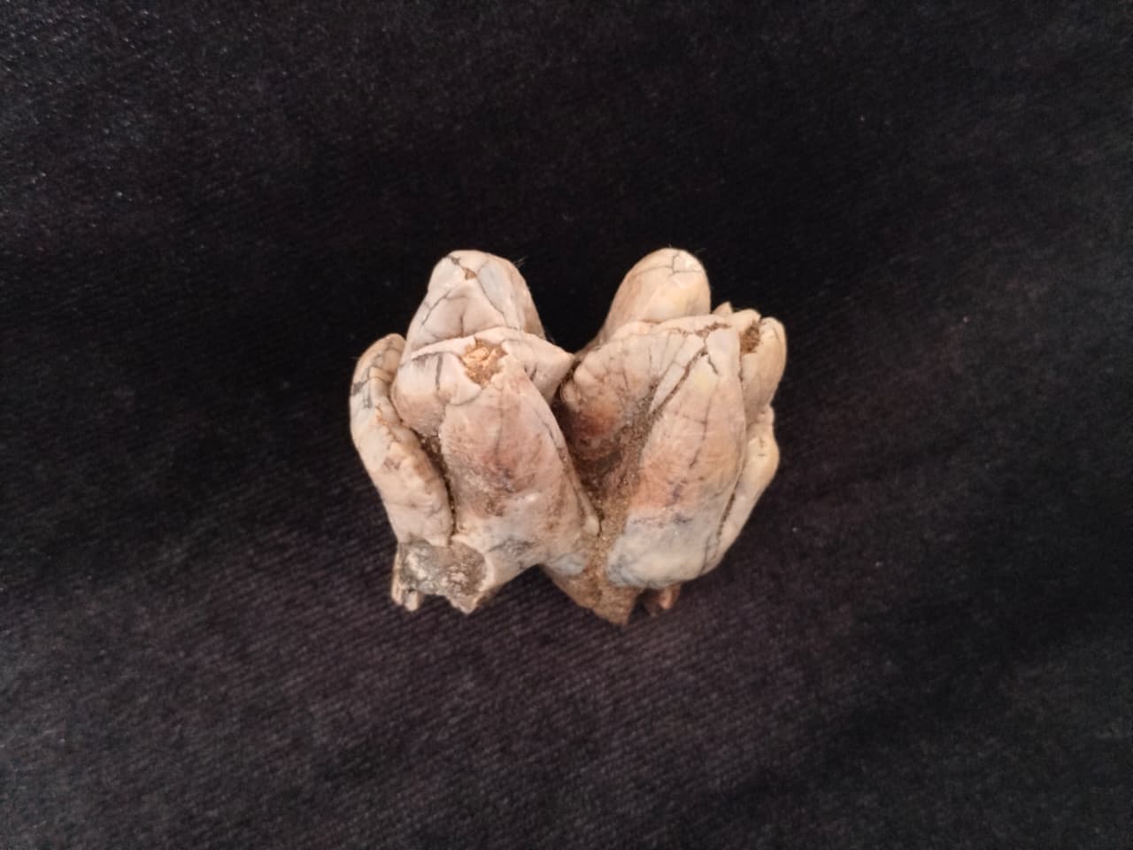 Berbentuk bulat terbuka bagian atas, terbuat dari porselin berglasir warna putih kebiruan. Mulut besar, bibir tipis dan rata. Pada permukaan dinding bagian dalam terdapat motif seekor burung sedang bertengger di dalam tanaman dan empat buah garis melingkar warna biru. Sedangkan pada permukaan dinding luar terdapat hiasan motif titik-titik, garis melingkar bergerigi daun berbentuk tumpal. Tanpa kaki dan dasar rata.