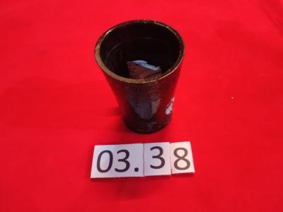 BAHAN PORSELIN WARNA PUTIH BENTUK BUNDAR, KAKI KECIL, DINDING BERBENTUK HURUF S. BERGLASIR RETAK-RETAK DENGAN WARNA DASAR HIJAU TELUR ITIK. ORNAMEN KEMBANG DAN PAGAR WARNA BIRU KEADAAN CACAT PADA BIBIR. KOLEKSI PENINGGALAN KESULTANAN KUTAI.