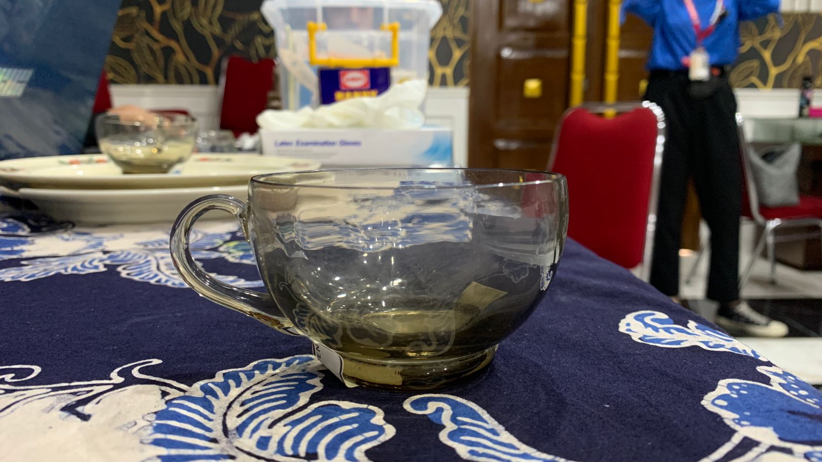 Dasar datar. kaki agak tebal, agak tinggi, badan cembung melebar. bibir agak membalik keluar.
