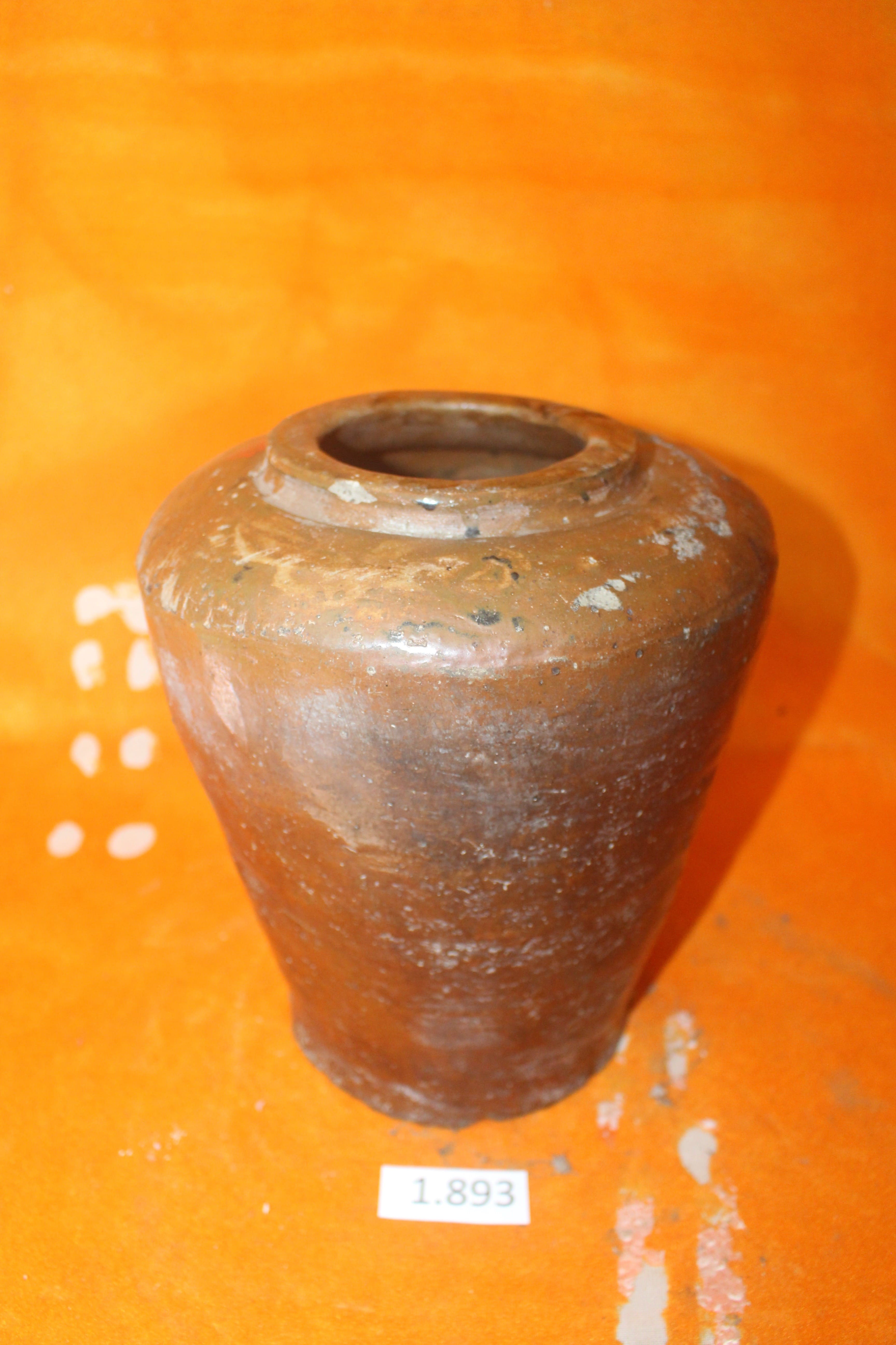 Dasar datar. kaki agak tebal, agak tinggi, badan cembung melebar. bibir agak membalik keluar.