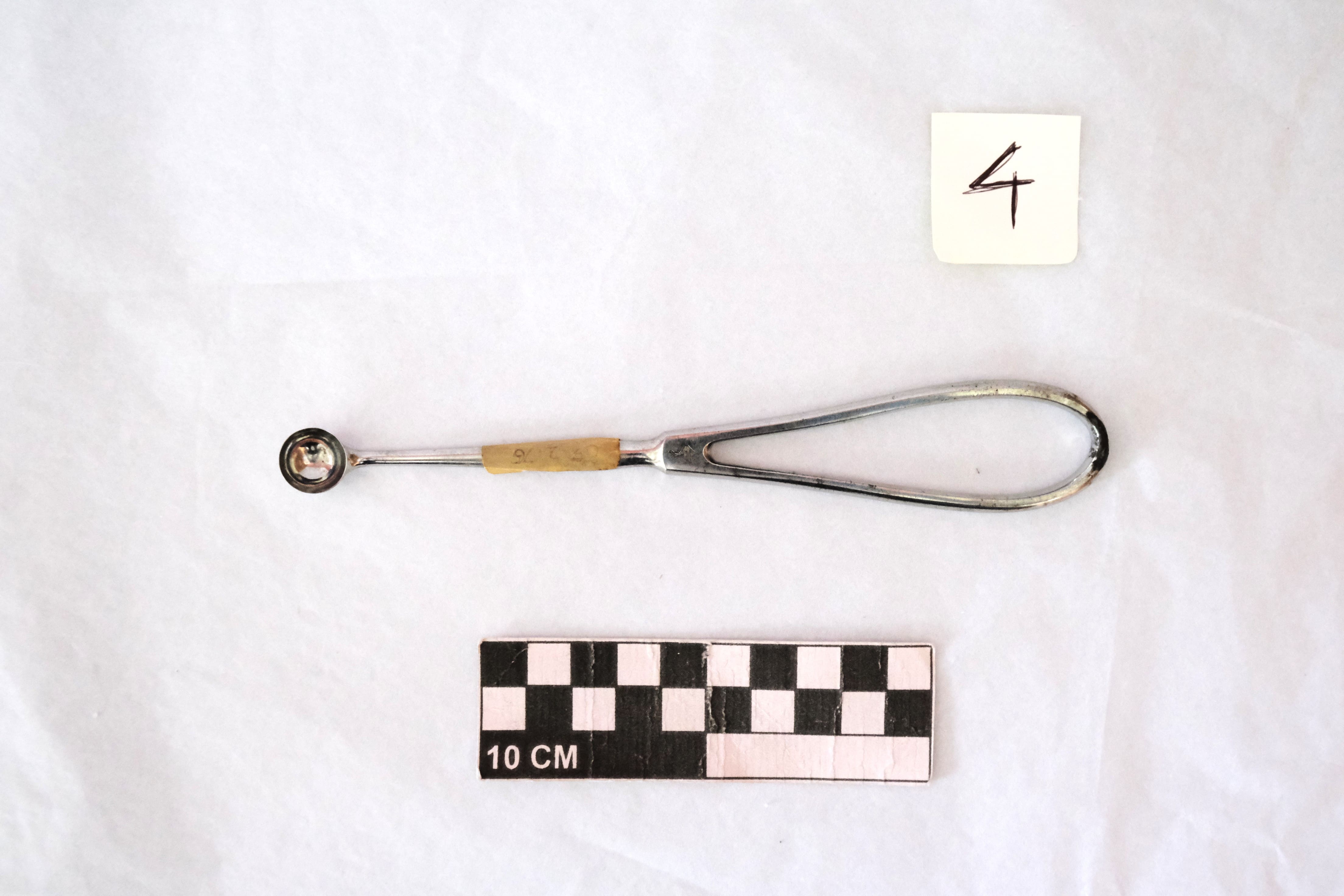 Mangkuk berbahan kaolin. Berbentuk mangkuk kecil, agak cekung, bibir rata, berkaki tinggi. Berglasir putih kebiruan menyeluruh, pada bagian atas glasir mengelupas karena proses pembakaran. Bermotif bibir dalam ada hiasan bunga (separuh), warna biru. Berfungsi praktis sebagai tempat sambal.