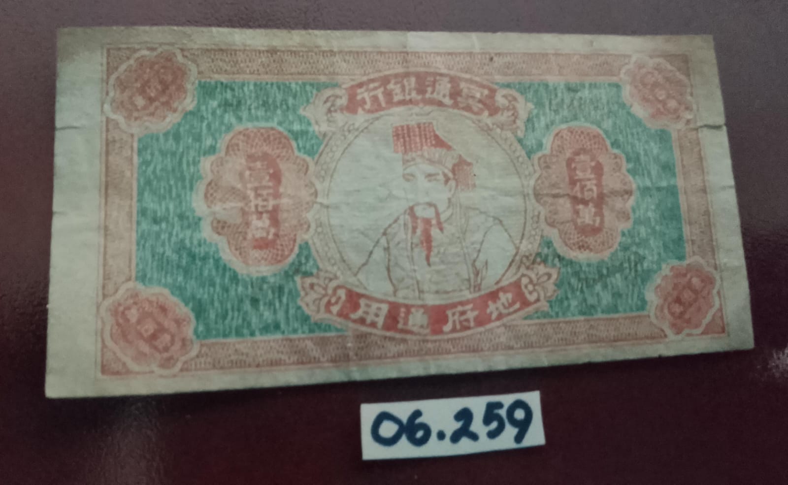 Bentuk bulat cekung, berkaki, terbuat dari tanah liat, berglasir warna putih dan coklat. Pada bagian dalam berglasir warna putih dan dihiasi dengan motif tanaman bunga berwarna biru. Bibir dan bagian luar berglasir warna coklat, sedangkan kaki dan dasar tidak diglasir. Digunakan sebagai wadah makanan. Cina, Dinasti Ching abad 16-17 M.