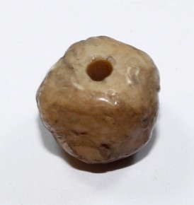 Manik-manik batu Cornelian ini terdiri dari satu warna tunggal (monokrom), yaitu warna putih kekuningan. Warna ini termasuk kategori warna manik kaca yang lebih banyak ditemui disitus karang agung dan air sugihan (musi bayuasin) berbentuk bulat dengan permukaan tidak merata, berjumlah 1 buah.