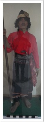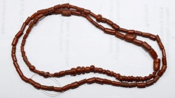Manik – manik kaca ini dibentuk dalam satu rangkaian berjumlah 102 buah. Terdiri dari dua bagian, yaitu manik – manik berbentuk silinder warna merah bata kusam berjumlah (89 buah) dan salah satnya berbentuk cakram bulat berjumlah (13 buah).