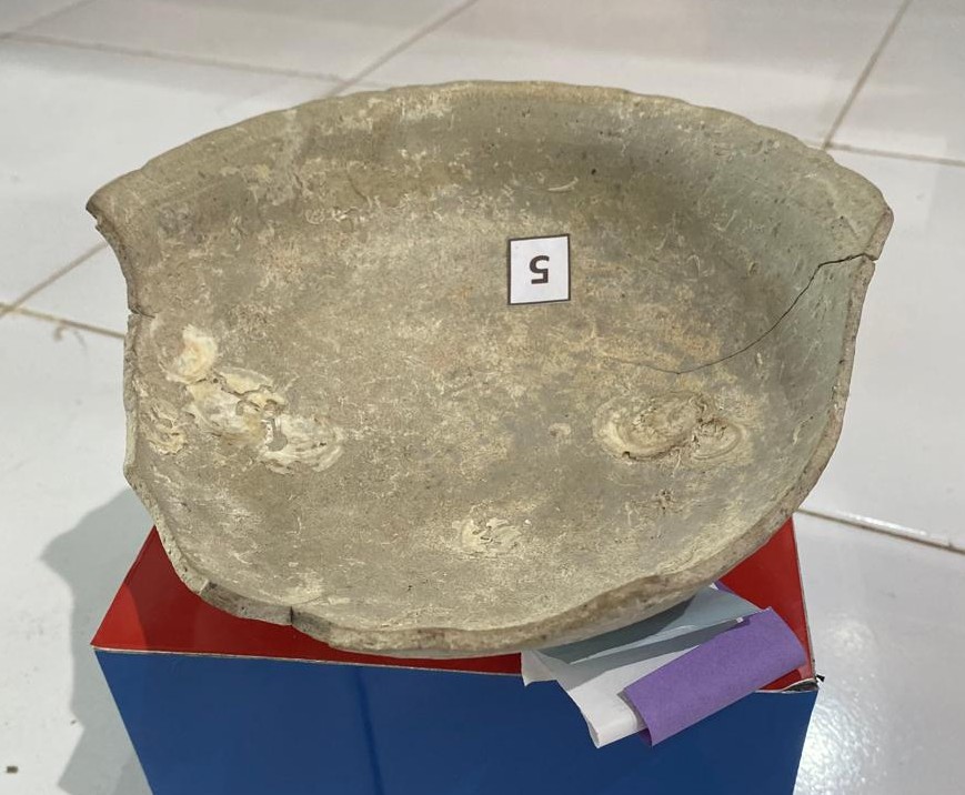Manik – manik kaca ini terdiri dari satu rangkaian. Terdiri dari dua jenis warna dan bentuk yang berbeda. Berwarna merah kusam dibuat berbentuk silinder (1 buah). Sedangkan warna kuning kusam terdiri dari bentuk bulat, cincin, bulat dumpak dan silinder. Jumlah keseluruhan (218 buah). Manik – manik kaca ini digunakan sebagai benda perhiasan.