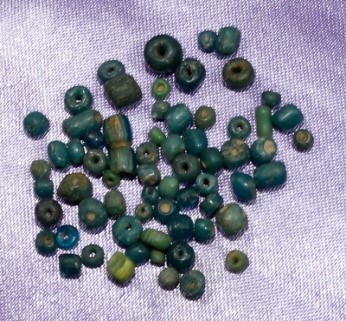 Manik-manik kaca ini merupakan hasil dari temuan ekskapasi (08-07-1978) berjumlah 66 buah. Bentuknya ada yang bulat, tabung dan cakram. Dominan berwarna monoton yaitu hijau muda, hijau kebiruan, hijau gelap yang kesemuanya translucent (tembus pandang).