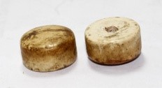 Manik –manik ini berjumlah 2 buah. Berbentuk tablet dengan warna kuning kusam. Jenis manik-manik ditemukan di Karang Agung jumlahnya lebih kecil dibandingkan warna manik-manik kaca lainnya. Dari segi kualitasnya tidak terlalu bagus.