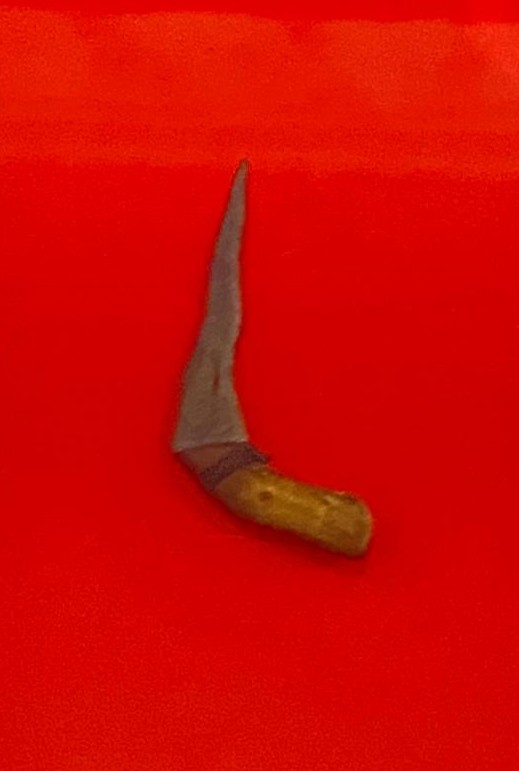 Manik – manik kaca ini berbentuk cakram, silinder berwarna kuning kusam. Berukuran kecil (8 buah), berukuran besar (1 buah). Ditemukan di Karang Agung Kabupaten Musi Banyuasin. Diperkirakan berasal dari abad ke – 5 Masehi.