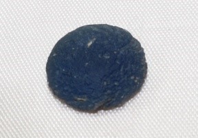 Manik-manik ini sangat unik berbentuk tablet dengan permukaan yang sudah aus (tidak rata), berwarna biru trans. Diduga manik-manik kaca berbentuk tablet ini berfungsi sebagai benda untuk ritual.