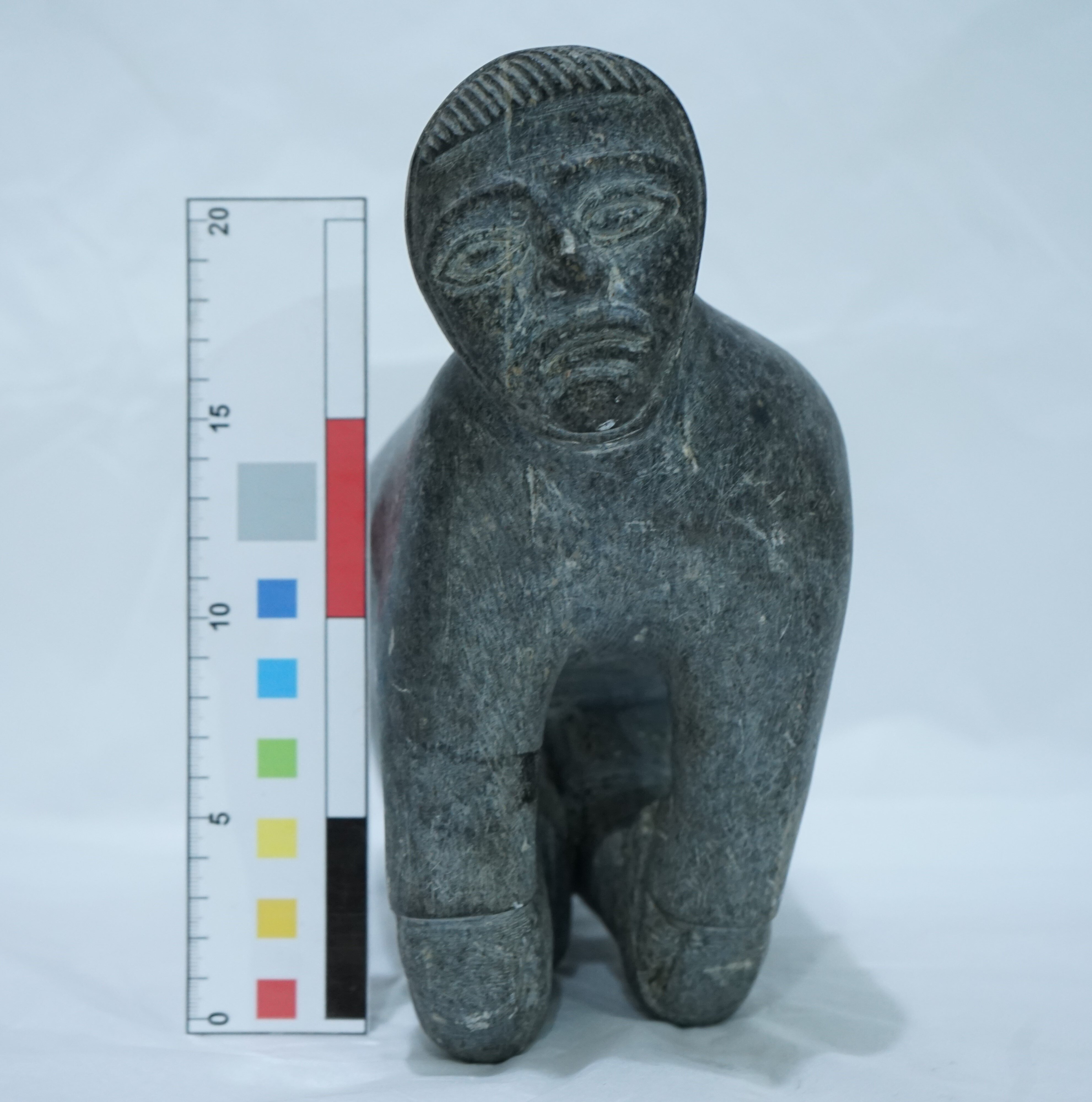Karya patung ini terbuat dari material batu berwarna abu dan menggambarkan objek seseorang yang sedang duduk membukuk dengan posisi badan condong ke depan. Terdapat beberapa bercak warna putih yang tersebar pada bagian-bagian patung, dan bercak warna hitam di bagian tengah patung.