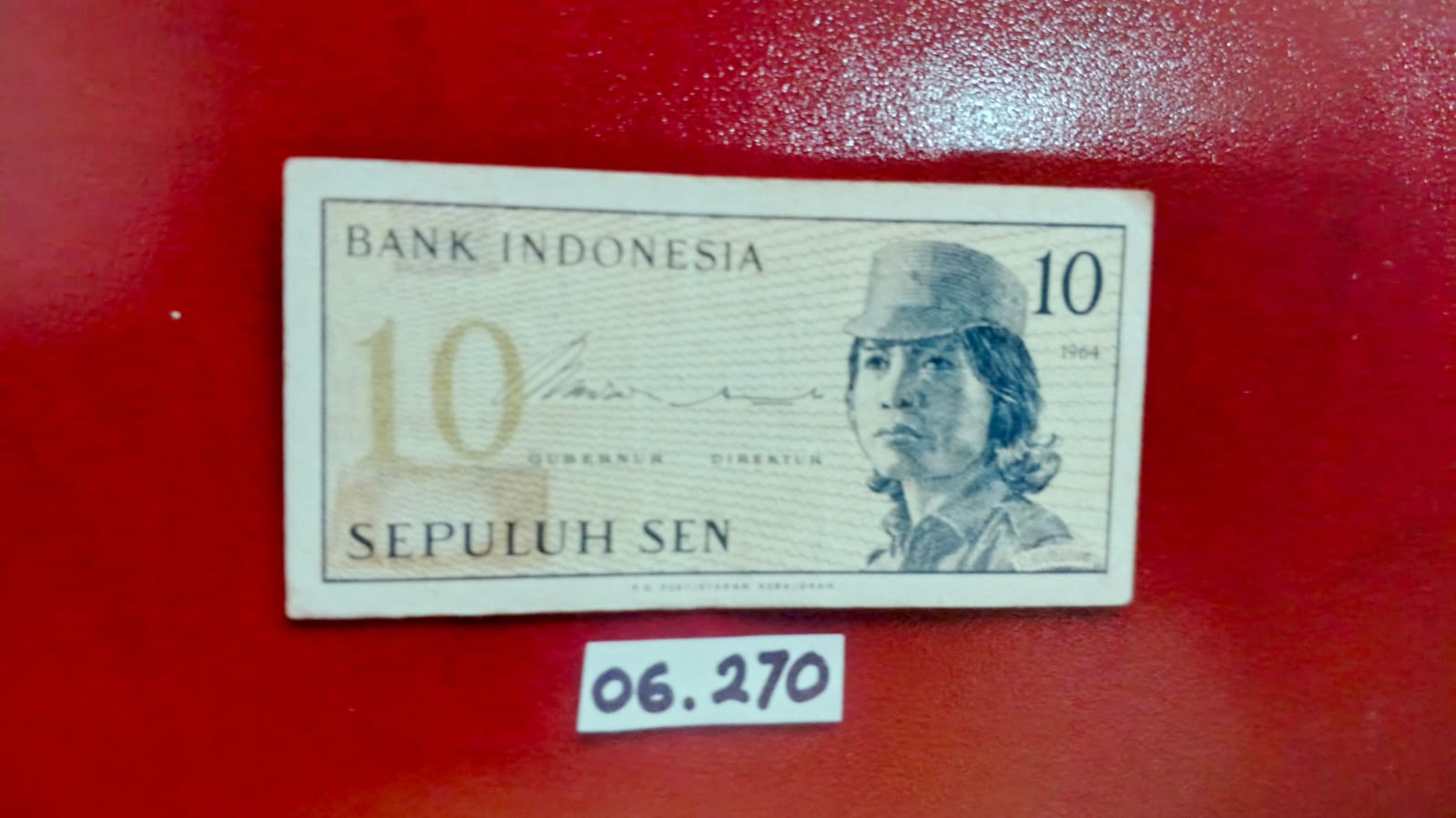 Terbuat dari bahan kertas, sisi muka bergambar sukarelawati, sisi belakang angka 10, tanda tangan yusuf muda dalan hertatiyanto. Percetakan kebayoran. Katalog uang kertas indonesia 1762-1996. Penerbit yayasan tridaya kejaksaan warga 1996