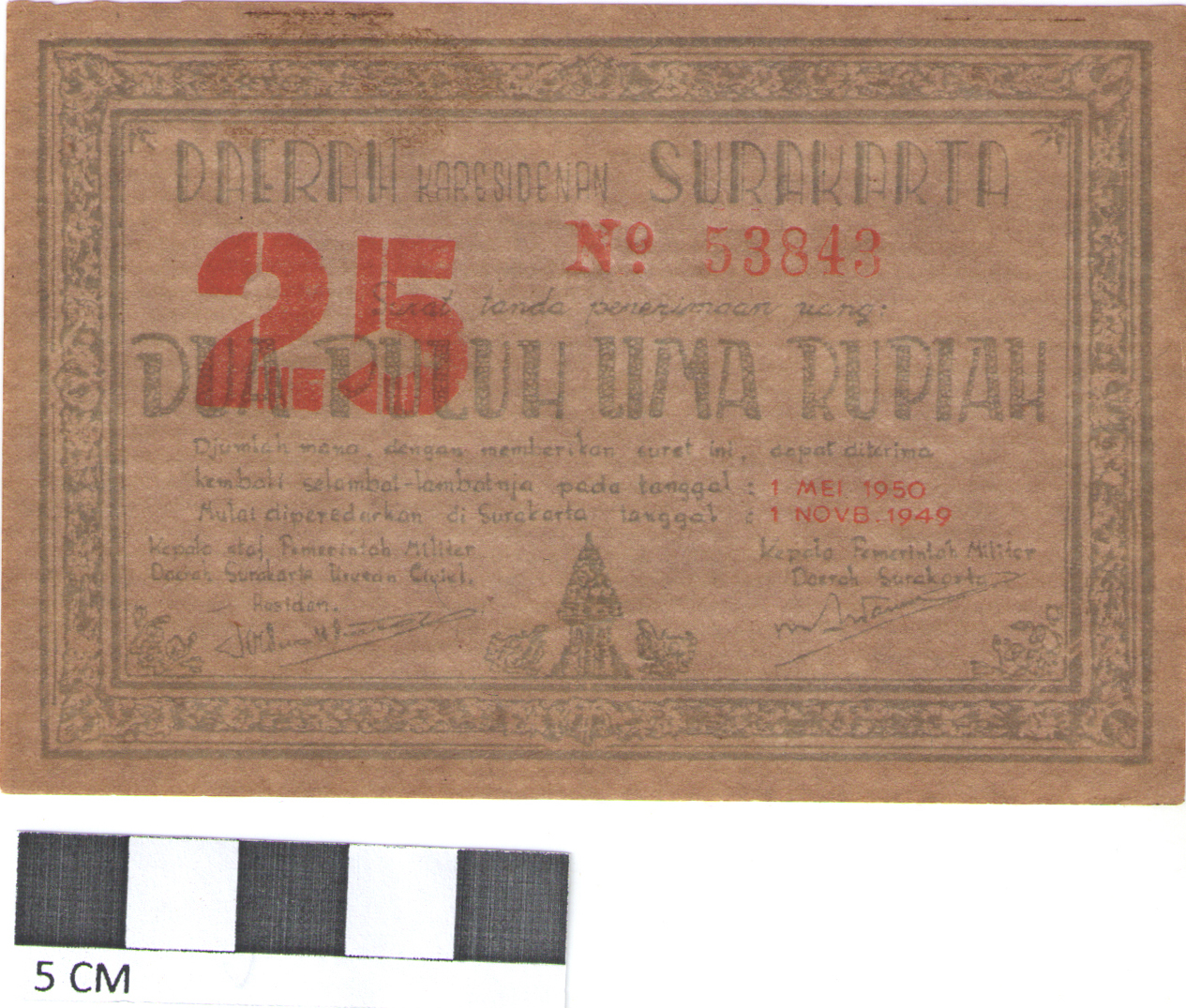 Mata uang ini terbuat dari bahan perak. Berbentuk bulat sisi depan terdapat tulisan NEDERL INDIE, dibagian tengah terdapat angka 1/4 Gulden dan gambar singa membawa tongkat diatasnya terdapat mahkota ( lambang negara Belanda ), dibawahnya terdapat angka 1915. Disisi sebaliknya bertuliskan huruf Arab SEPER SEPULUH RUPIAH sedfang dikelilingi tulisan Jawa SEPRAPAT RUPIAH.