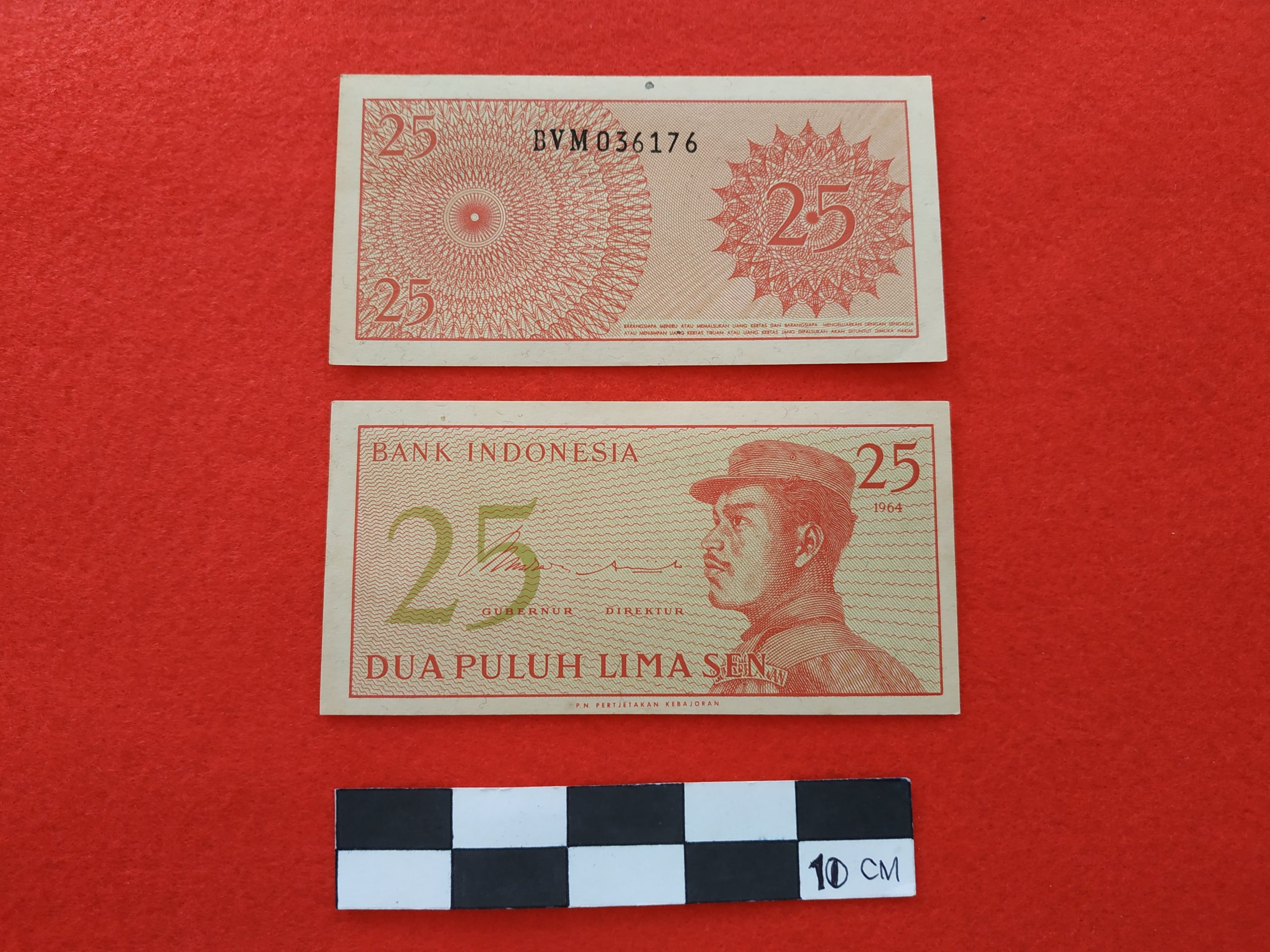 Mata uang ini terbuat dari bahan perak. Berbentuk bulat sisi depan terdapat tulisan NEDERL INDIE, di bagian tengah terdapat angka 1/4 Gulden dan gambar singa membawa tongkat diatasnya terdapat mahkota (lambang negara Belanda), dibawahnya terdapat angka 1921. Di sisi sebaliknya bertuliskan huruf Arab SEPER SEPULUH RUPIAH sedang dikelilingi tulisan Jawa SEPRAPAT RUPIAH.
