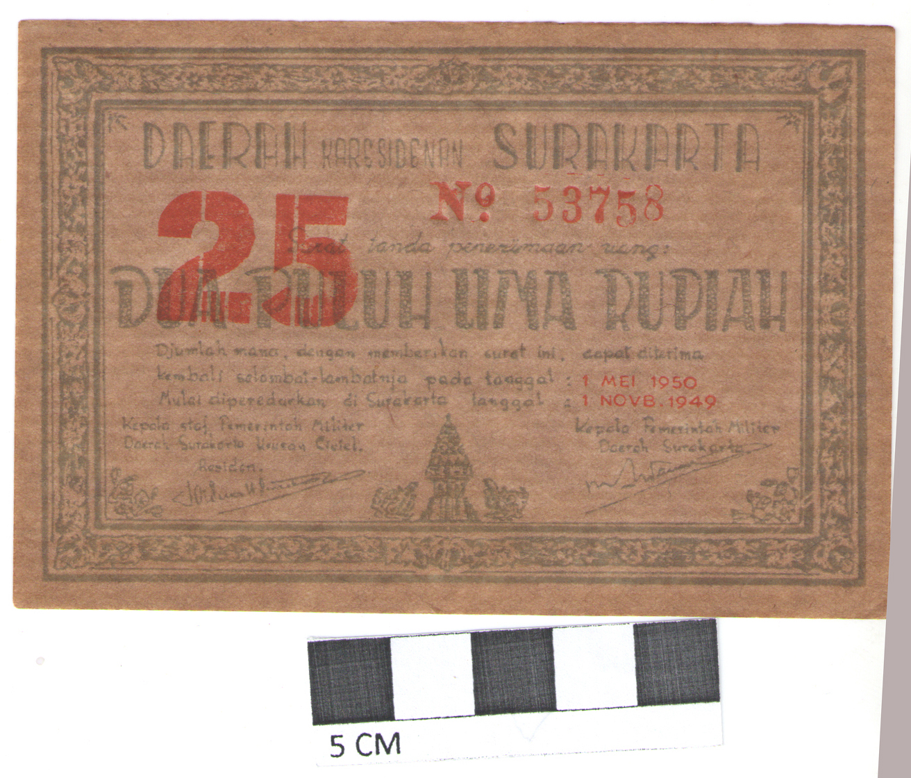 Mata uang ini terbuat dari bahan dasar perak berbentuk bulat. Pada bagian muka, terdapat tulisan "1/10" di sisi kanan dan huruf "G" di sisi kiri, kemudian bagian bawah bertuliskan tahun pembuatan "1937". Di sisi sebaliknya bertuliskan huruf Arab "Sepersepuluh Rupiah" yang dikelilingi huruf Jawa.