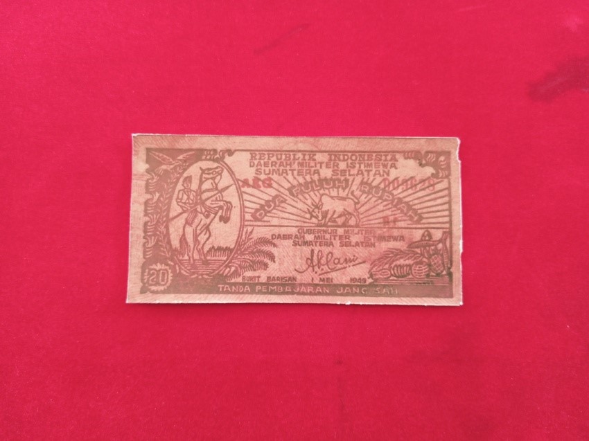 Mata Uang dengan nilai 20 Rupiah yang dikeluarkan Pemerintah Daerah Militer Istimewa Sumatera Selatan (DMISS) dan ditandatangani oleh Gubernur Militer, AK. Gani di Bukit Barisan tanggal 1 Januari 1949. Mata uang ini hanya berlaku di wilayah Sumatera Selatan.