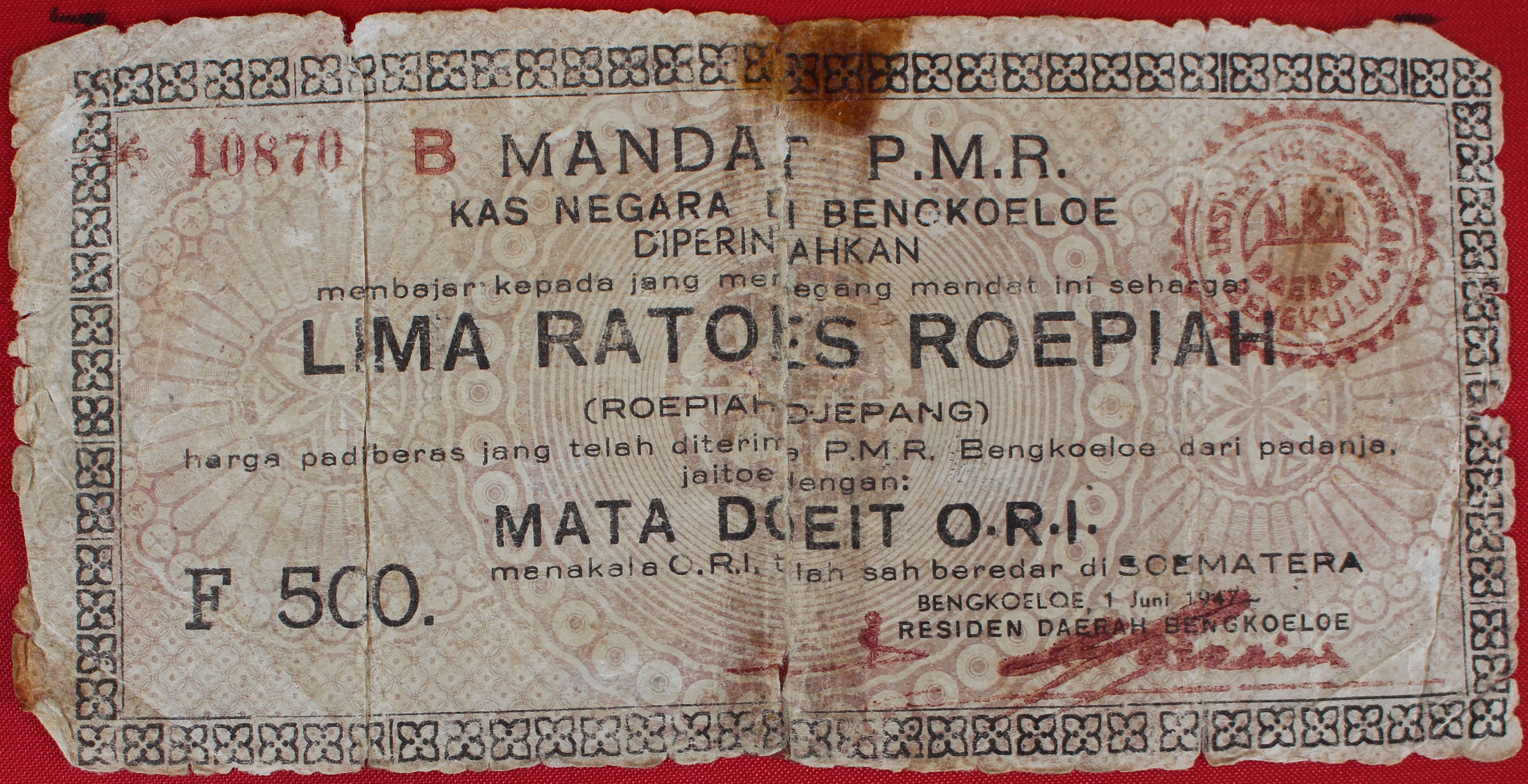 Mata Uang Kertas Mandat PMR Rp 500