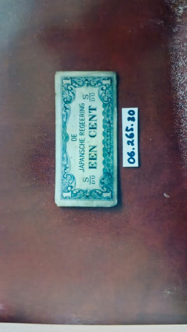 terbuat dari bahan kertas, sisi muka harga dan nama otoritas, sisi belakang terdapat angka 1, percetakan Djakarta Insatsu Kodja No.Seri s/Du. Sumber acuan katalog uang kertas Indonesia 1782-1996, penerbit Yayasan Tridaya Warga Kejaksaan R.I 1996