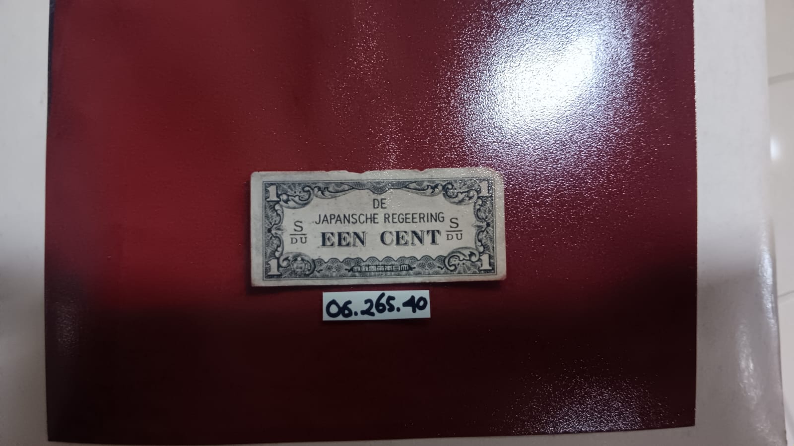 terbuat dari bahan kertas, sisi muka harga dan nama otoritas, sisi belakang terdapat angka 1, percetakan Djakarta Insatsu Kodja No.Seri s/Du. Sumber acuan katalog uang kertas Indonesia 1782-1996, penerbit Yayasan Tridaya Warga Kejaksaan R.I 1996