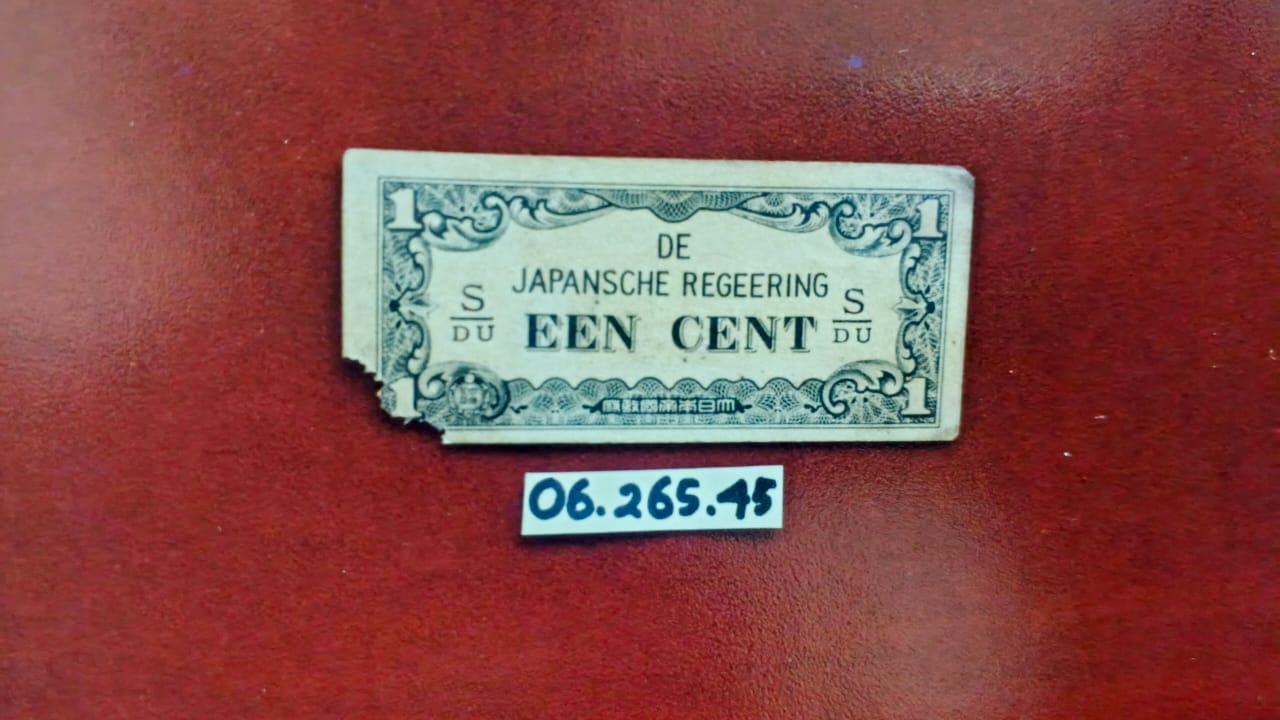 terbuat dari bahan kertas, sisi muka harga dan nama otoritas, sisi belakang terdapat angka 1, percetakan Djakarta Insatsu Kodja No.Seri s/Du. Sumber acuan katalog uang kertas Indonesia 1782-1996, penerbit Yayasan Tridaya Warga Kejaksaan R.I 1996
